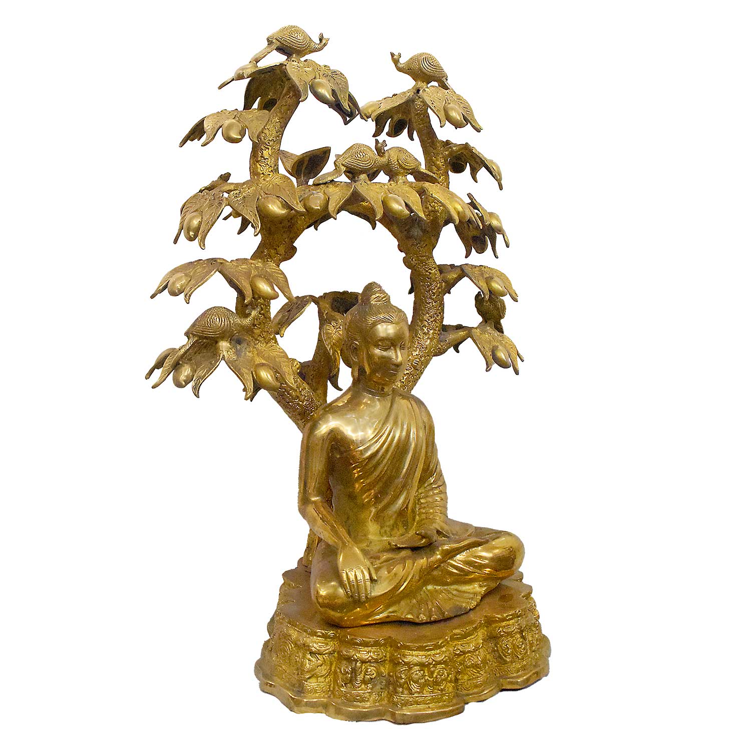 • About the Product: 35 Inch Brass Meditating Buddha Under Turtle & Bird Tree Statue