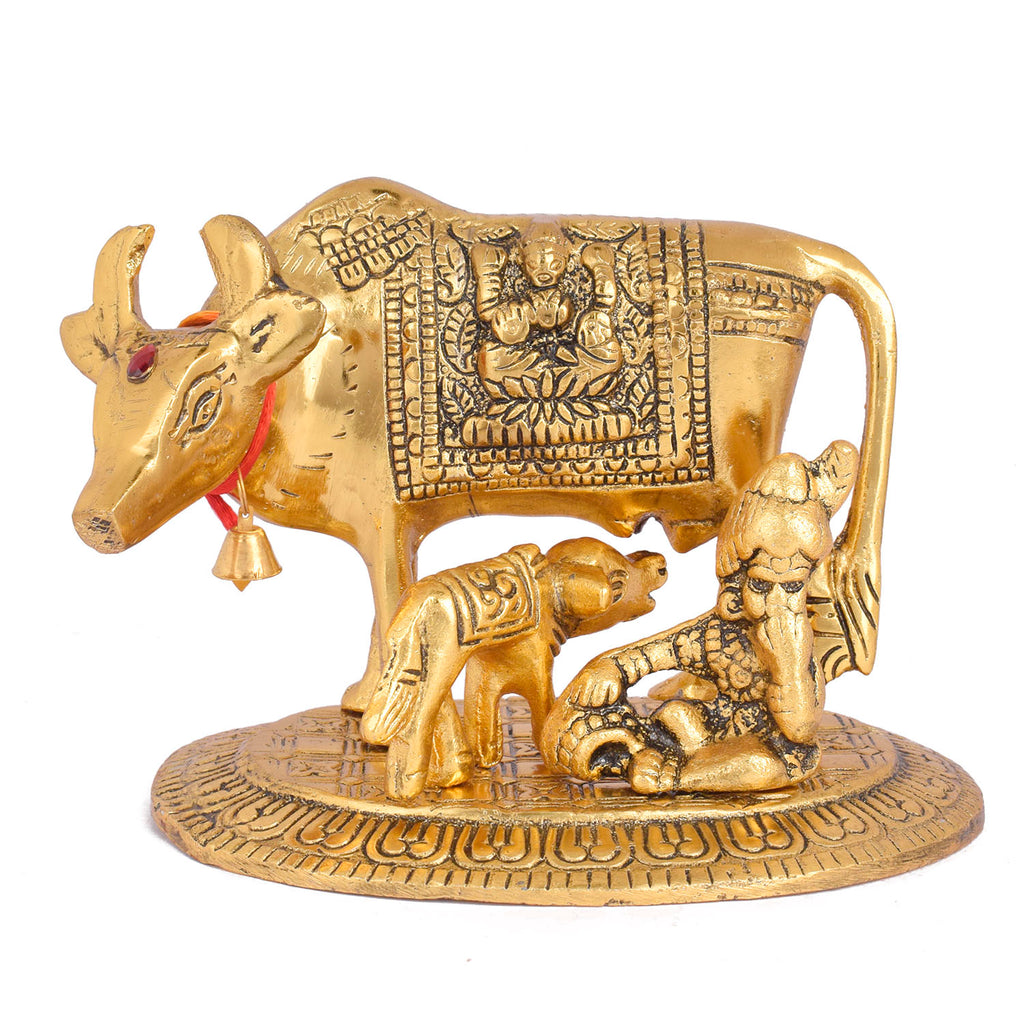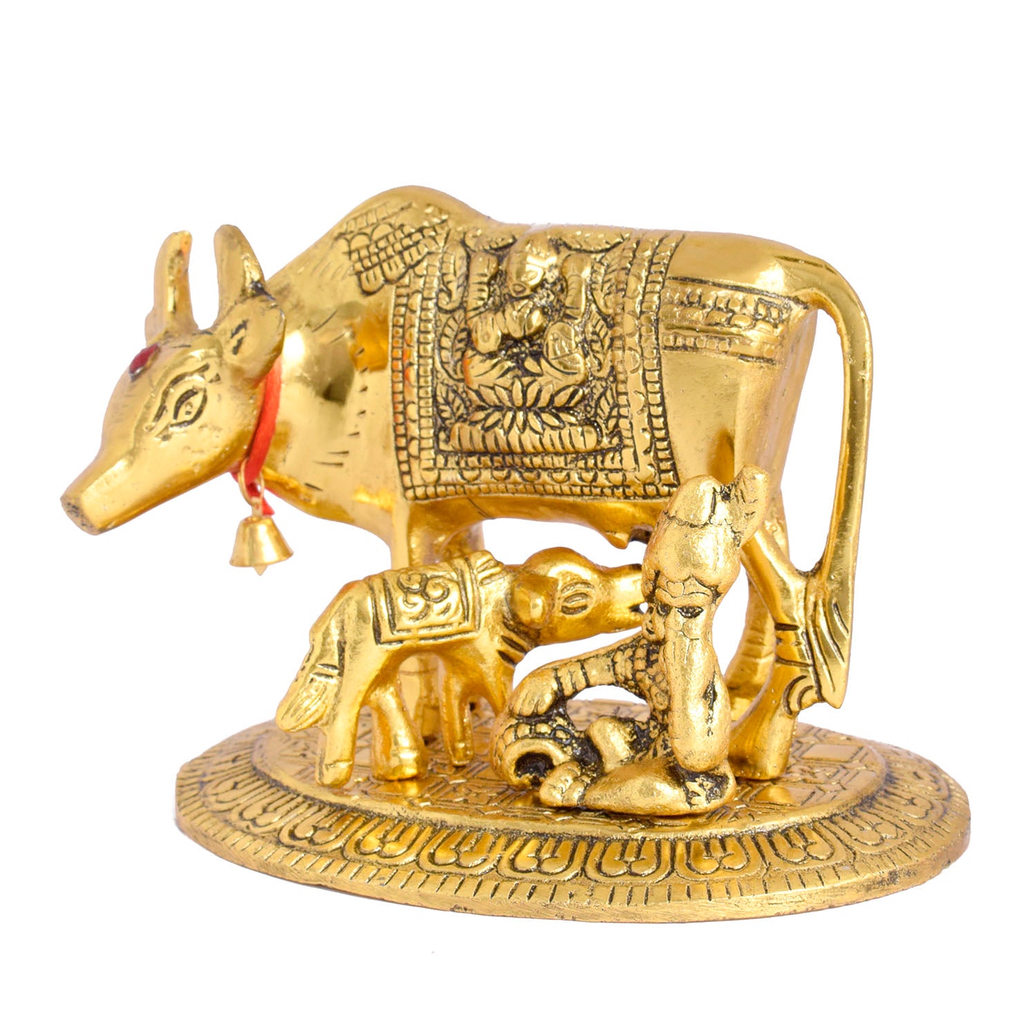Buy Online | Brass Kamdhenu Cow Idol with Laddu Gopal | Satvikstore.in – satvikstore.in