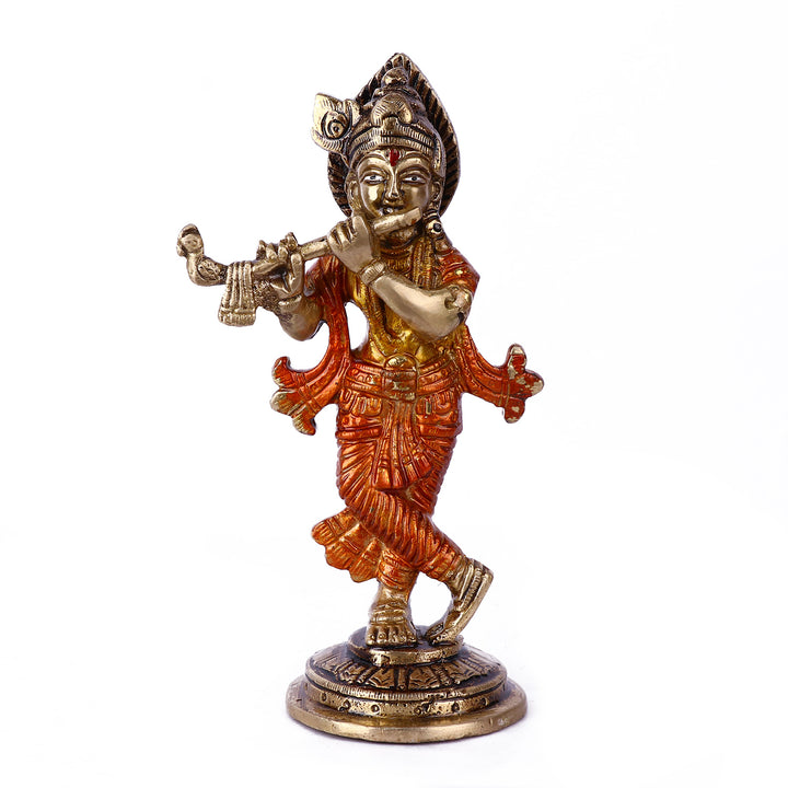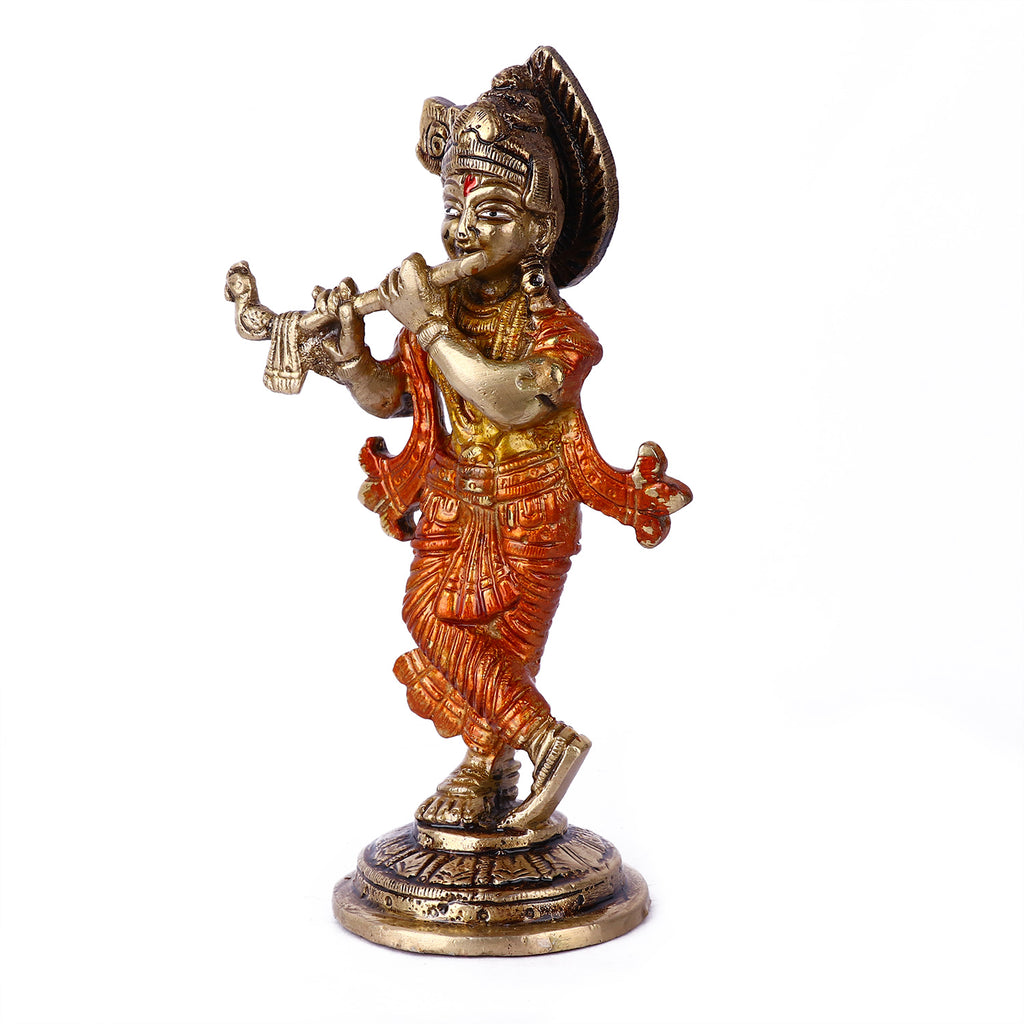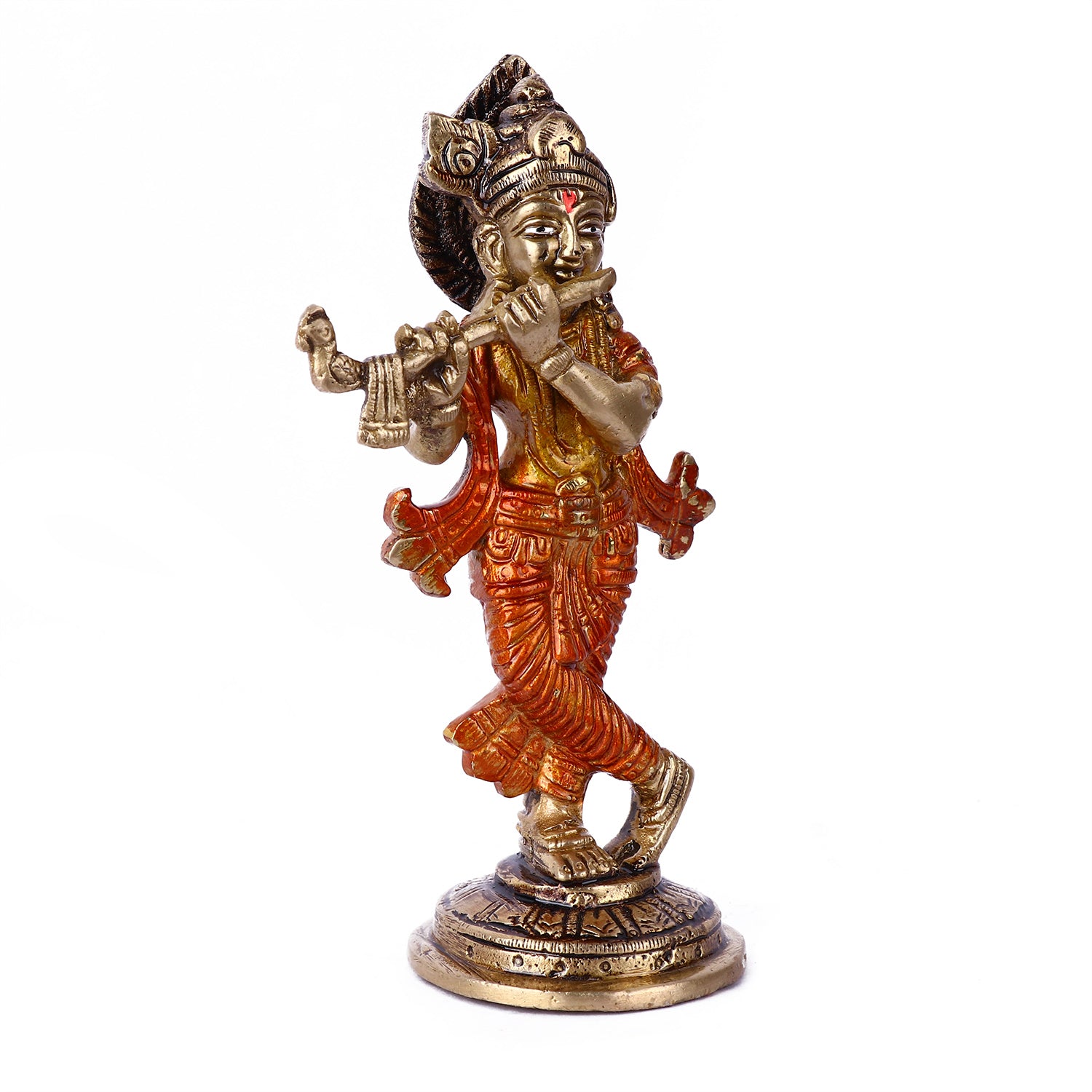 Standing Brass Krishna Idol | Puja Room Decor | Brass Krishna Idol | Exclusive Brass Krishna Idol | Brass Gift Item for Housewarming | Premium Brass Idols for Sale | Handmade Brass Krishna Idol | Antique Finish Krishna Idol |