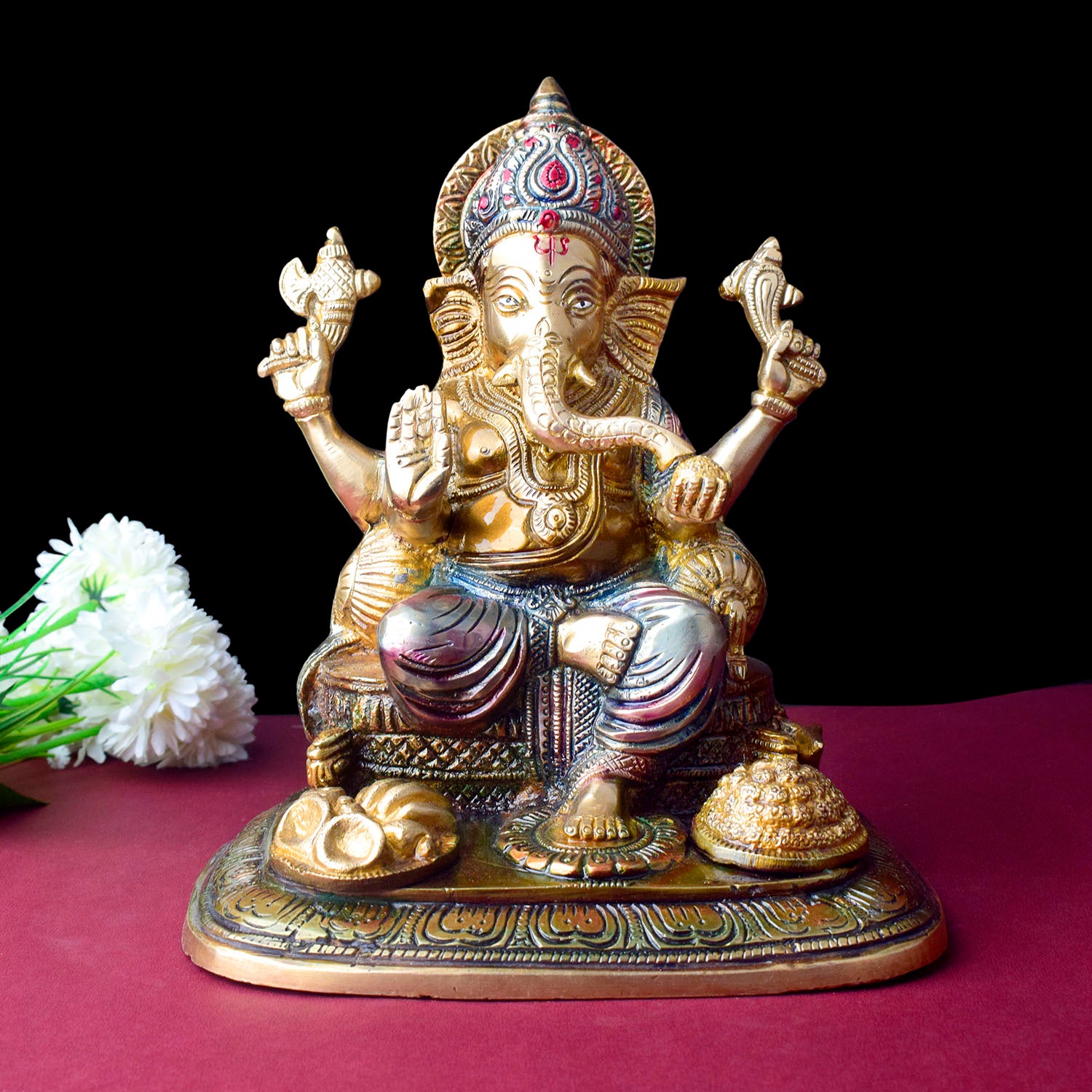 • Material: The Ganesh Idol is made from Pure Brass Virgin Material.