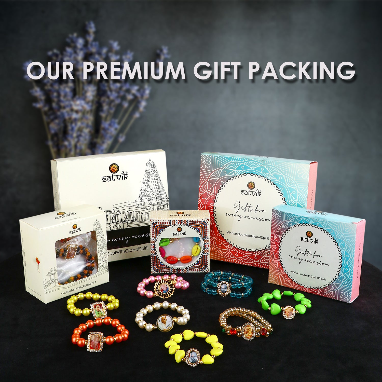 Guruji Stone Bracelets removes negative energy and and uplift the spiritual, mental and physical Health.Β Easy to wear, Skin Friendly.Β You can Gift this Beautiful Beads Bracelets to your family, friends, relative, neighbor on religious occasion like : pooja, kirtan, return gift idea, housewarming, home inauguration, Puja and other.Β Very beautiful bracelet made of artificial ceramic stones with smooth round finish, each bracelet is handpicked for quality check, Jai Guruji is Photo also there in the bracelet. This is matches trend with tradition. Proudly Made in India for Our Devotees.