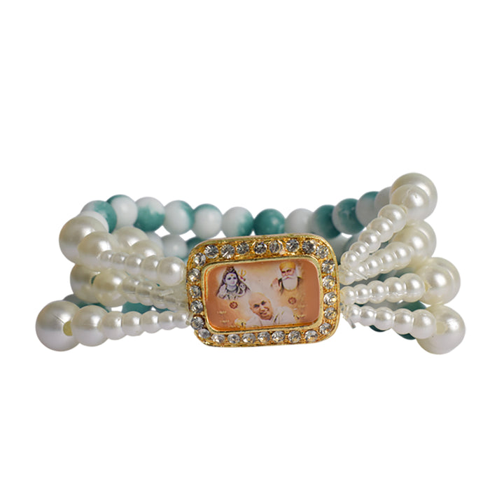 baby blue guruji bracelet | light blue guruji bracelet | four layer spiritual bracelet | elegant guruji swaroop bracelet | divine baby blue bracelet | white pearl devotional bracelet | jai guruji bracelet | spiritual jewellery india | pastel blue bracelet | pooja return gift for women | stylish spiritual bracelet | meditation accessories | guruji bracelet india | graceful spiritual jewellery | indian religious bracelet | satvikstore spiritual products | guruji bracelet online india | pooja items