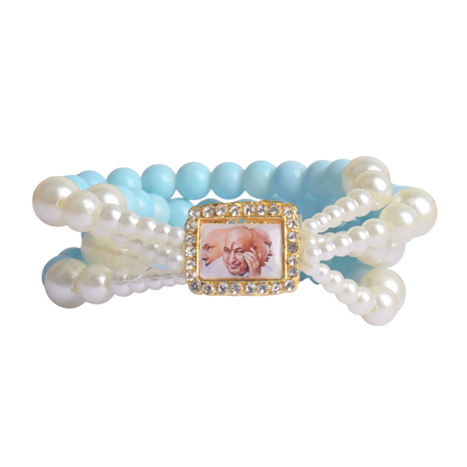 Buy Baby Blue & White Pearl Guruji Swaroop Bracelet | satvikstore.in