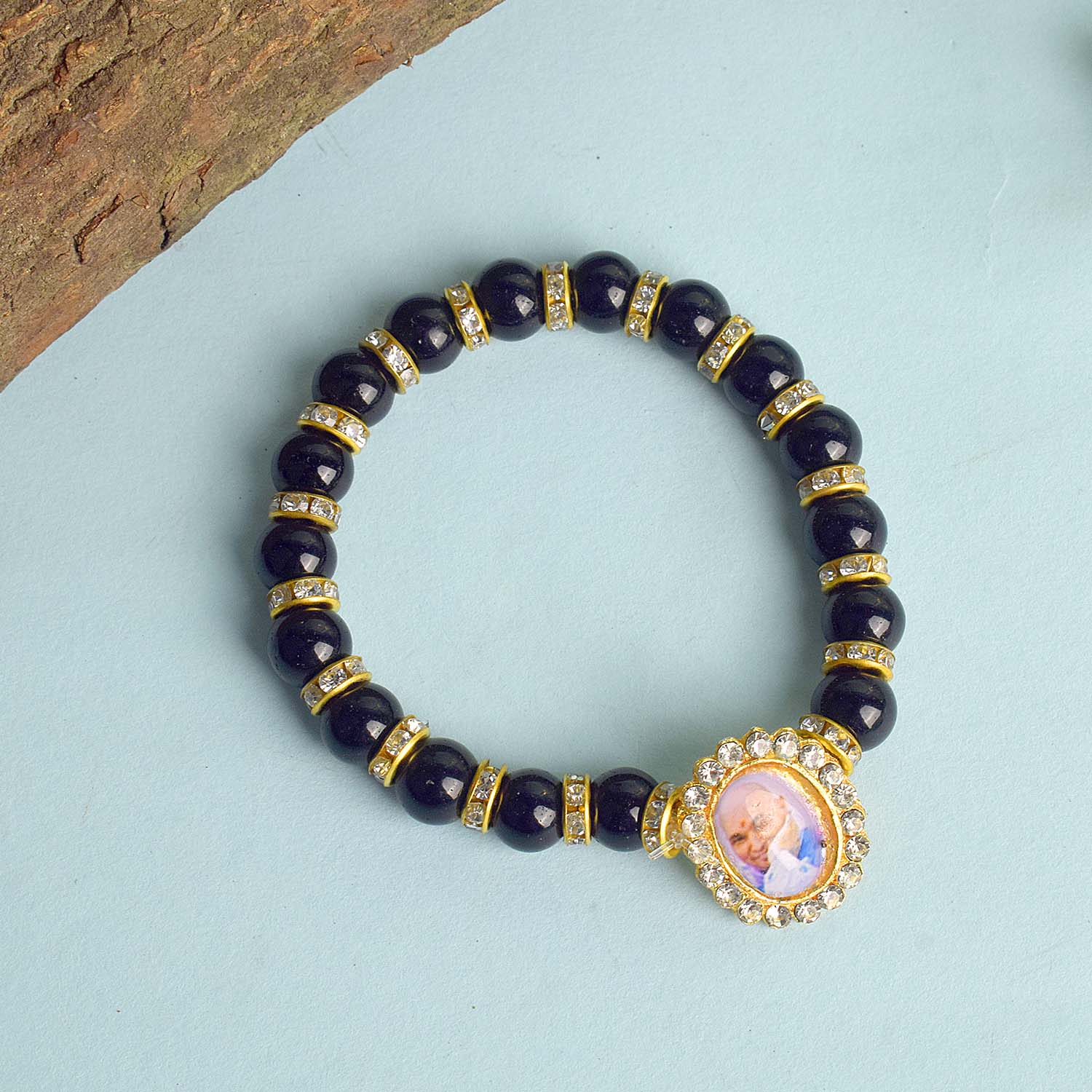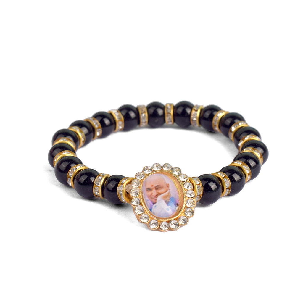 black guruji bracelet | black golden bracelet | shiny black bracelet | golden studs guruji bracelet | single layer spiritual bracelet | elegant guruji swaroop bracelet | stylish daily wear bracelet | spiritual black bead bracelet | jai guruji bracelet | handmade spiritual bracelet | devotional jewellery india | pooja return gift | satvikstore bracelet | guruji bracelet india | spiritual jewellery | one layer guruji bracelet | crystal effect bracelet