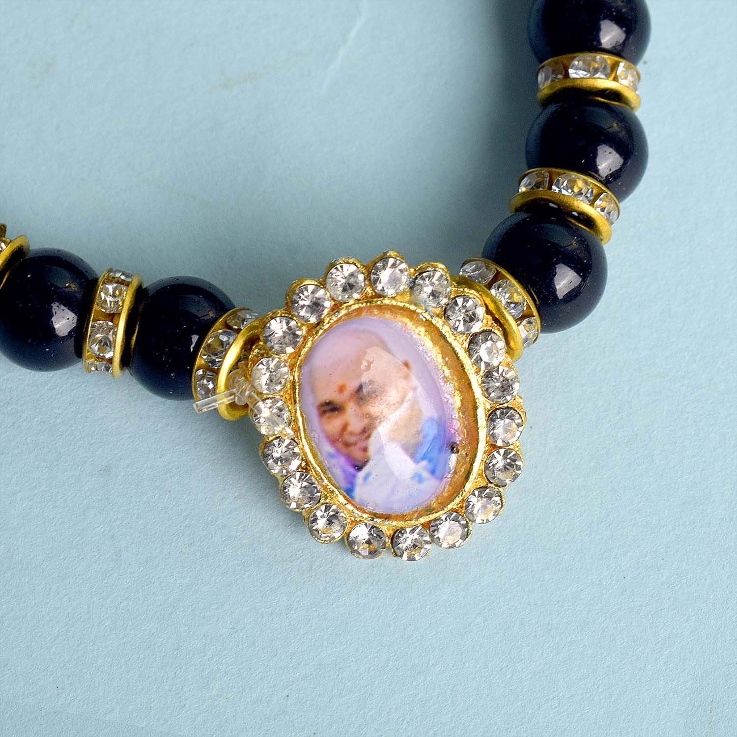 Buy Online | Black Golden Stud Single Layer Guruji Swaroop Bracelet | satvikstore.in