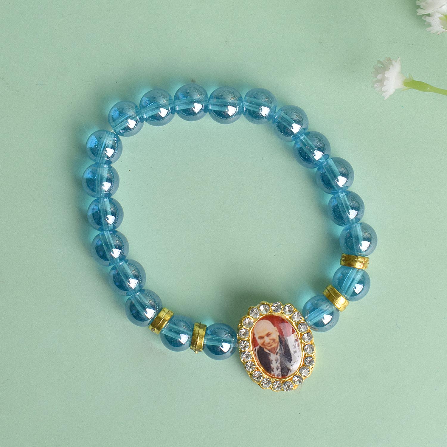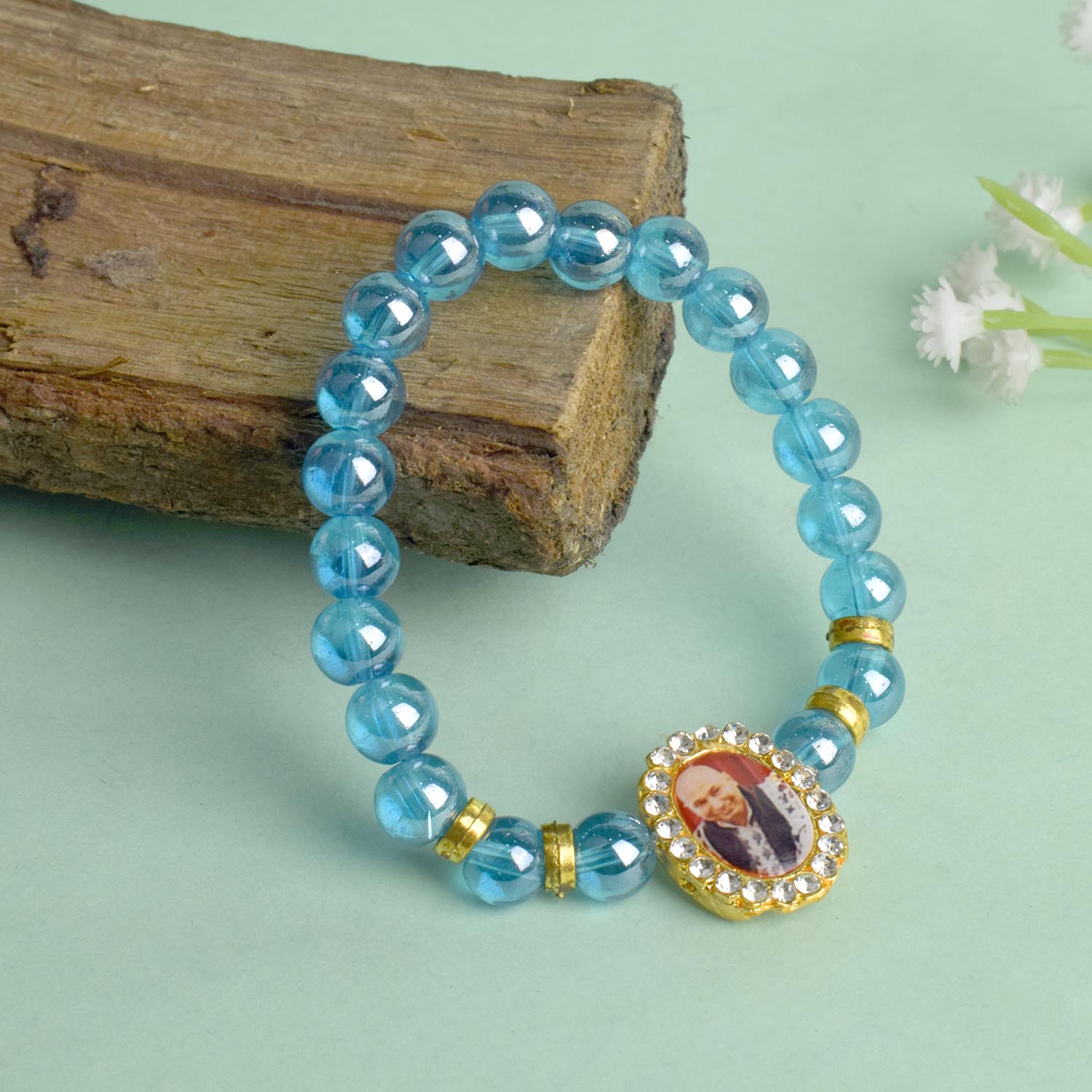 Buy Online | Blue Shiny Single Layer Guruji Swaroop Bracelet | satvikstore.in