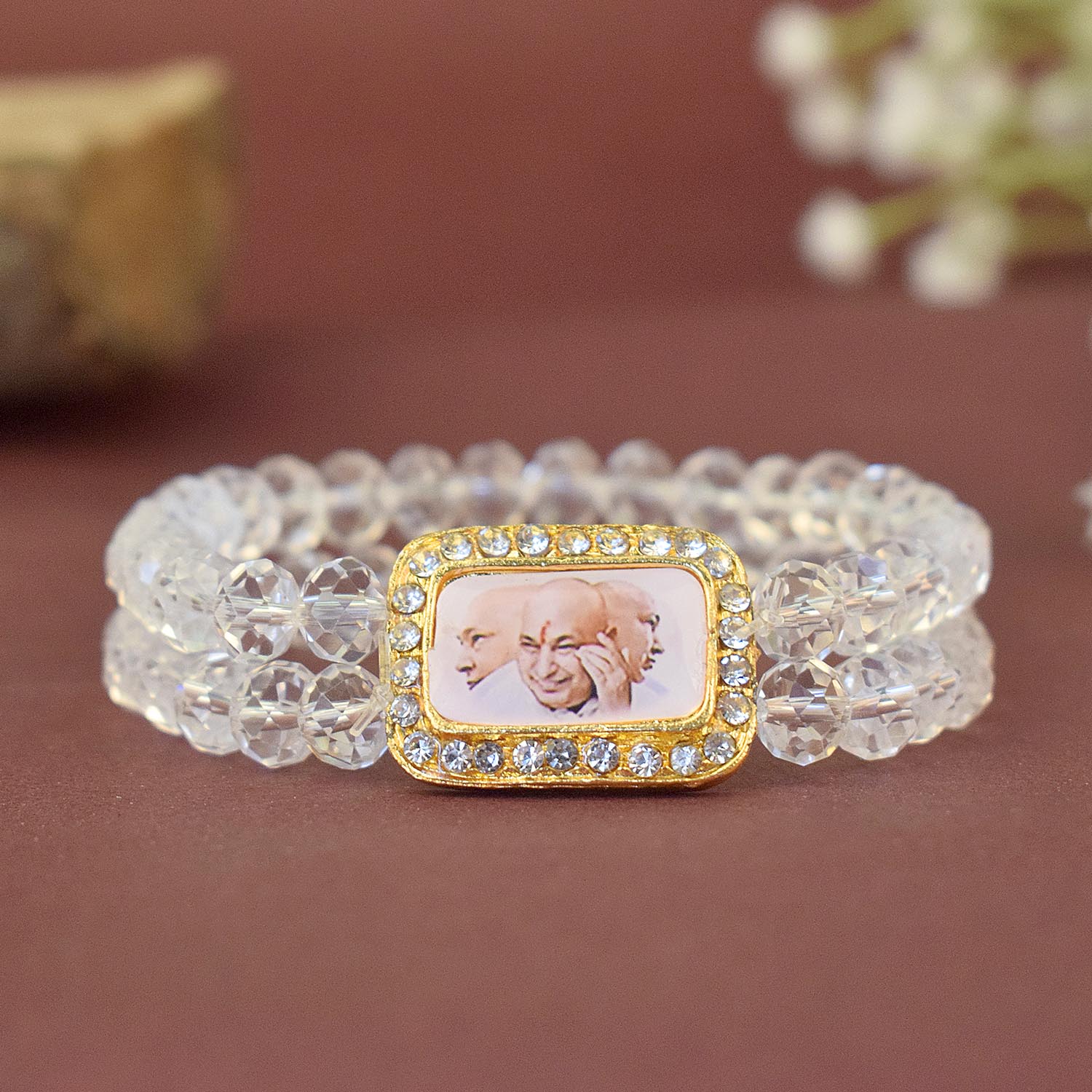 Clear Shiny Beads Single Layer Guruji Swaroop Bracelet