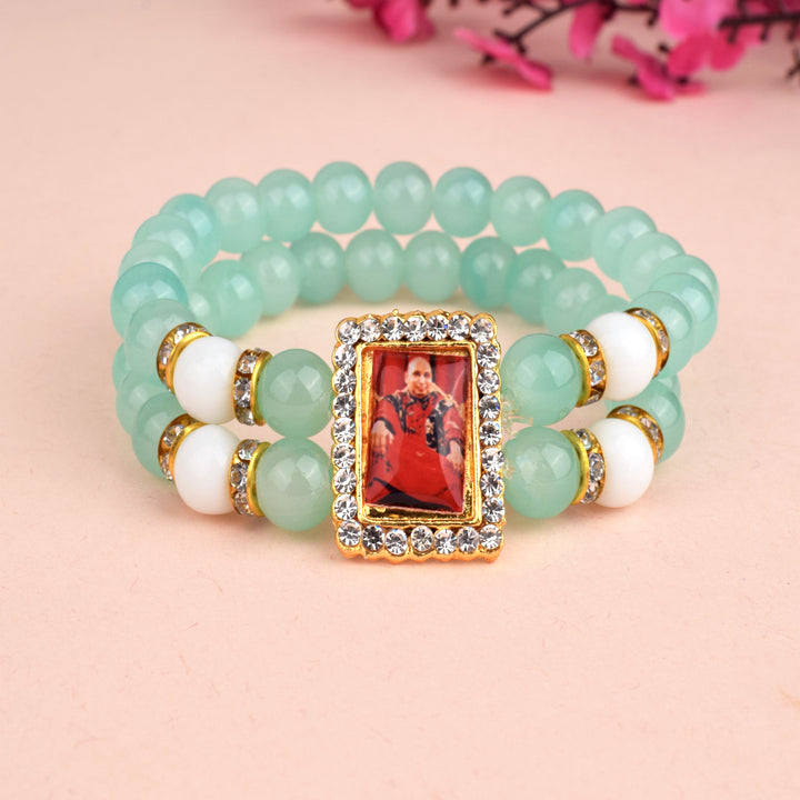 Cyan Green Beaded Guru Ji Maharaj Swaroop Bracelet | Satvikstore.in – satvikstore.in