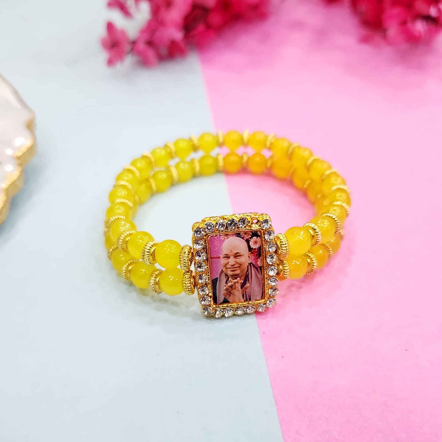Buy Dark Yellow Beaded Guruji Swaroop Bracelet Online | Satvikstore.in – satvikstore.in