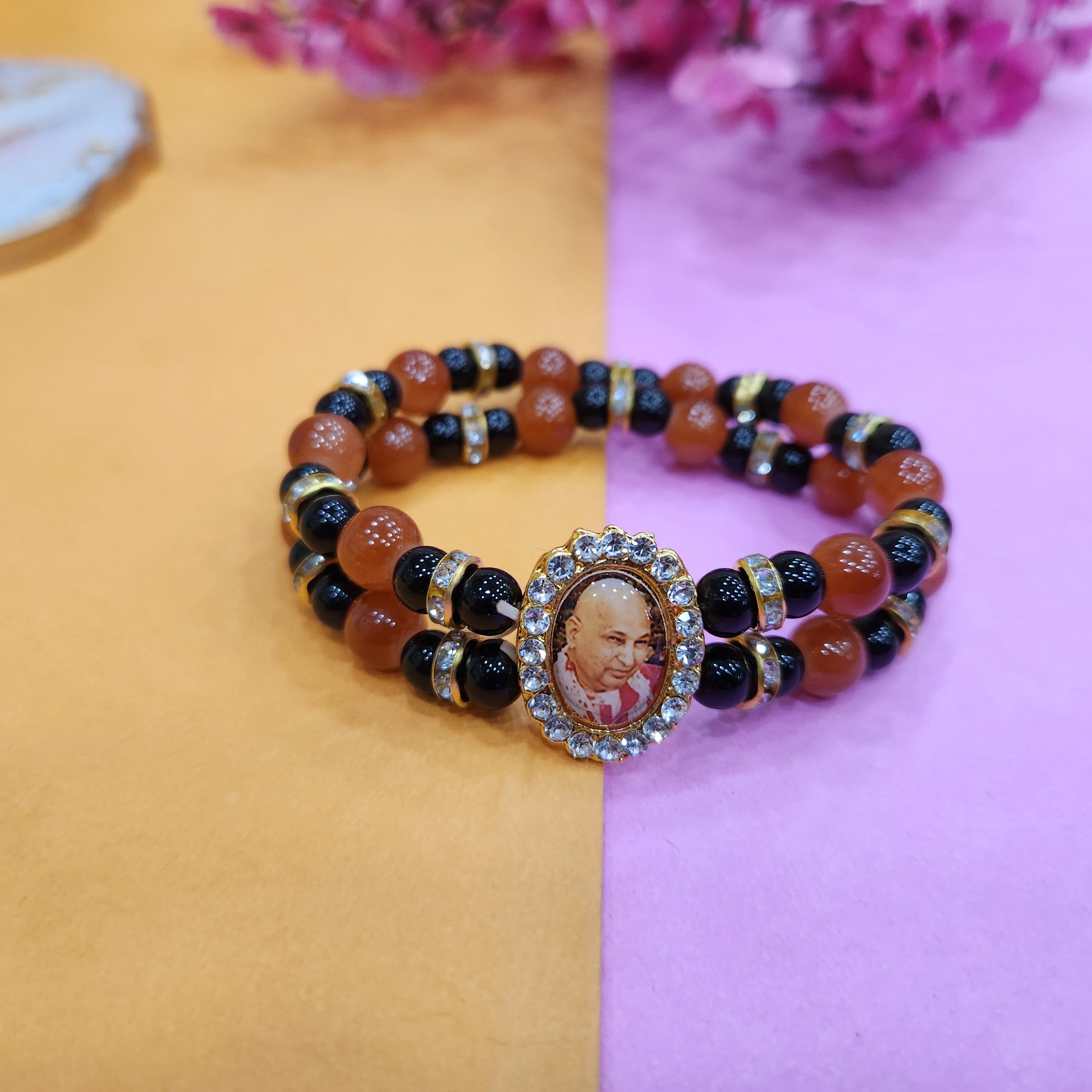 Our Guruji bracelet is a tangible symbol of divine connection. Crafted with care and reverence, it is designed to be worn close to your heart, serving as a constant reminder of Guruji's presence. The bracelet is adorned with sacred symbols and gemstones that hold spiritual significance, channeling positive energy and protection.