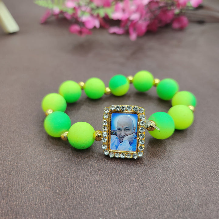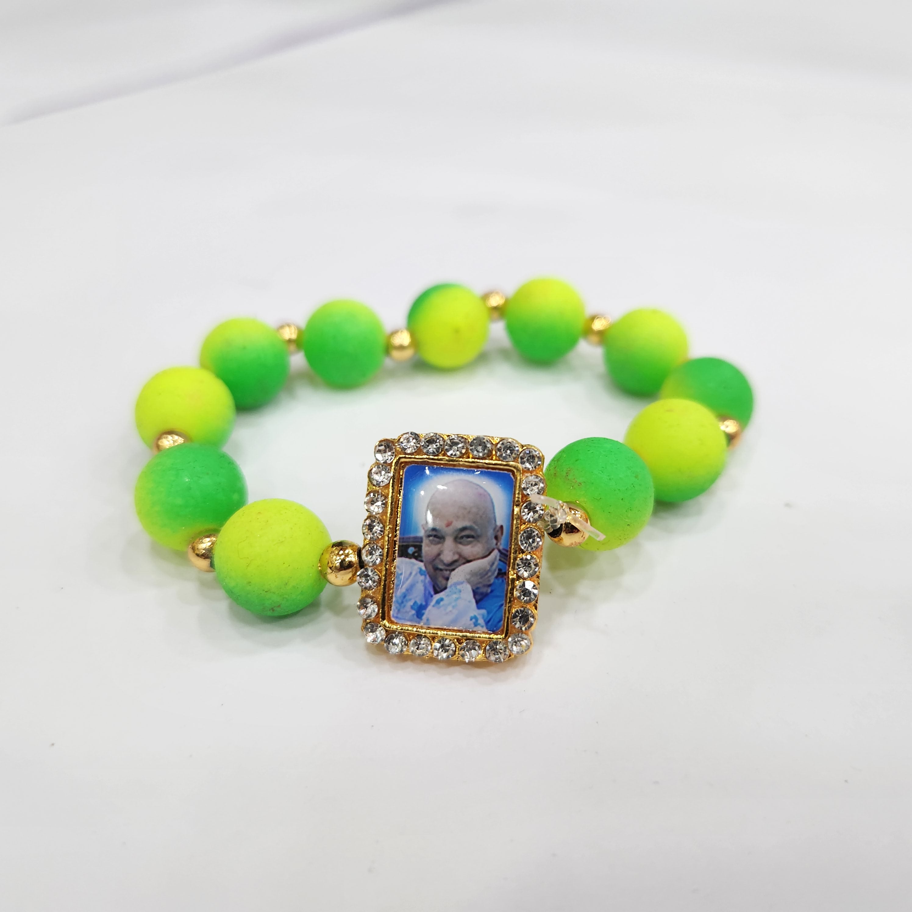 Our Guruji bracelet is a tangible symbol of divine connection. Crafted with care and reverence, it is designed to be worn close to your heart, serving as a constant reminder of Guruji's presence. The bracelet is adorned with sacred symbols and gemstones that hold spiritual significance, channeling positive energy and protection.