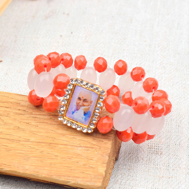 Guru Ji Maharaj Swaroop Orange Beads Artisan Bracelets for Men and Women