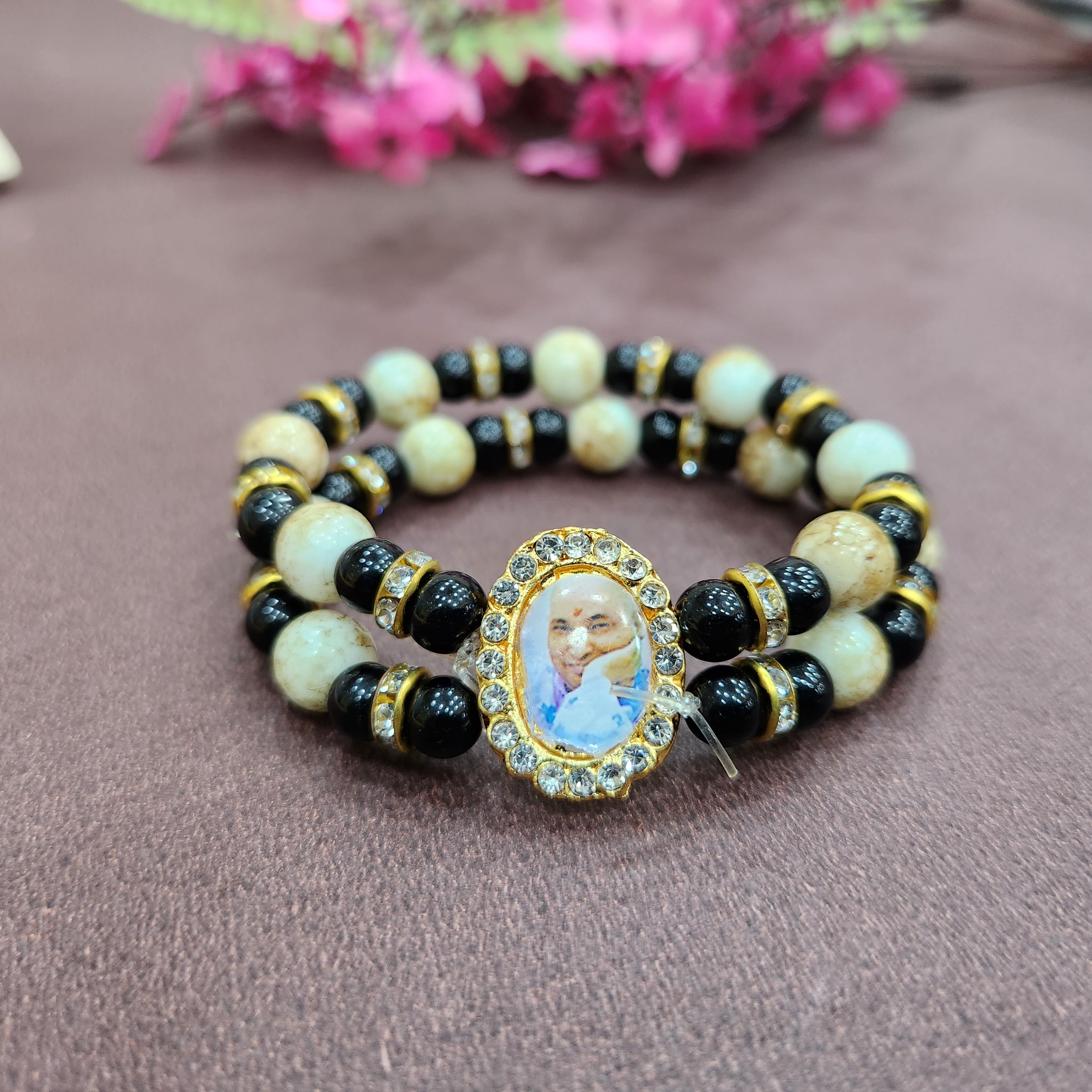 Our Guruji bracelet is a tangible symbol of divine connection. Crafted with care and reverence, it is designed to be worn close to your heart, serving as a constant reminder of Guruji's presence. The bracelet is adorned with sacred symbols and gemstones that hold spiritual significance, channeling positive energy and protection.