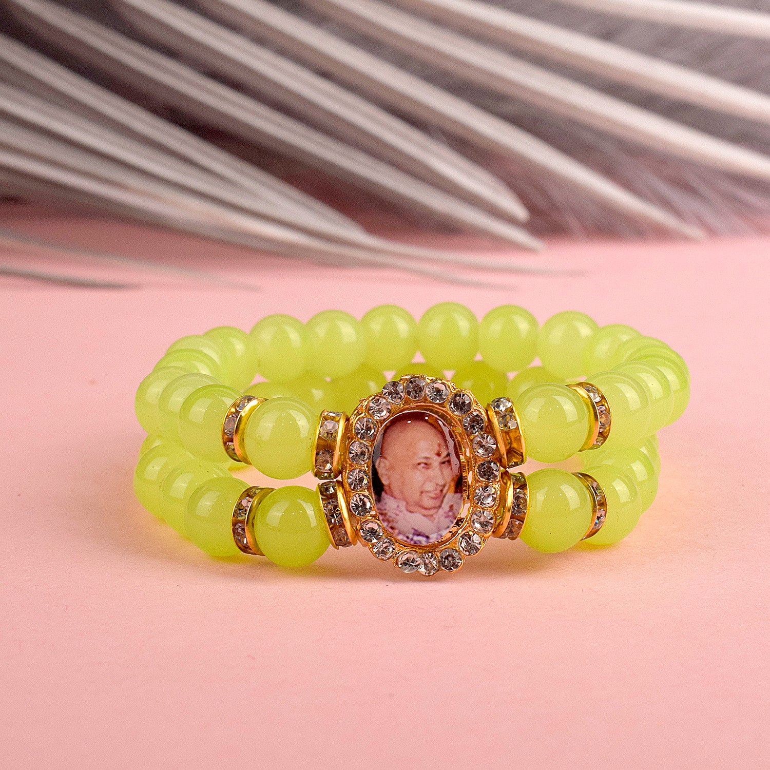 Lime Yellow Beaded Guru Ji Maharaj Handmade Bracelets for Men and Wome – satvikstore.in
