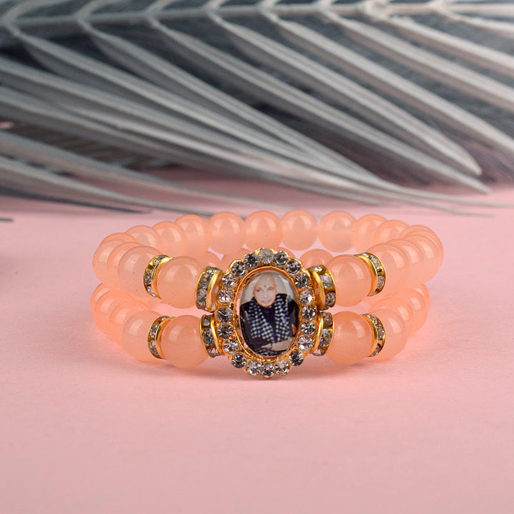 Peach Beaded Guru Ji Maharaj Handmade Bracelets for Men and Women – satvikstore.in