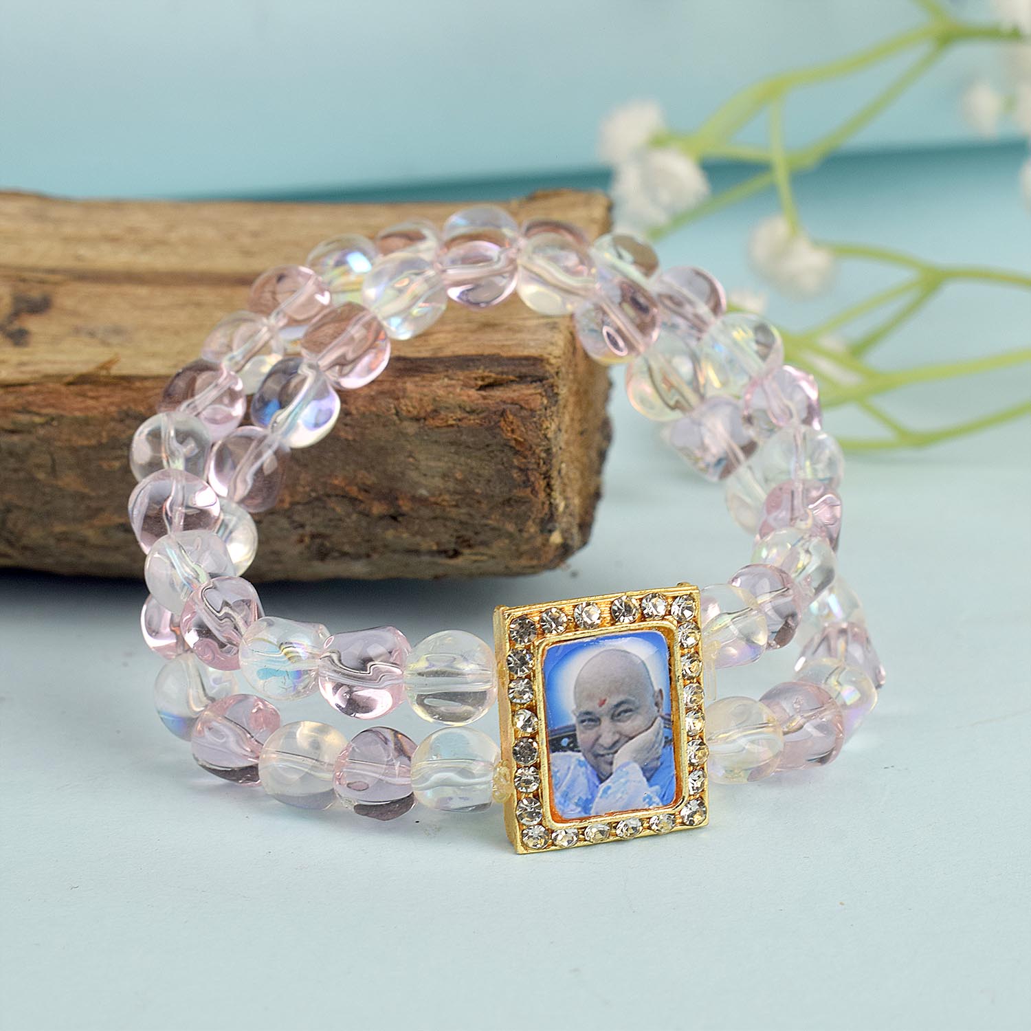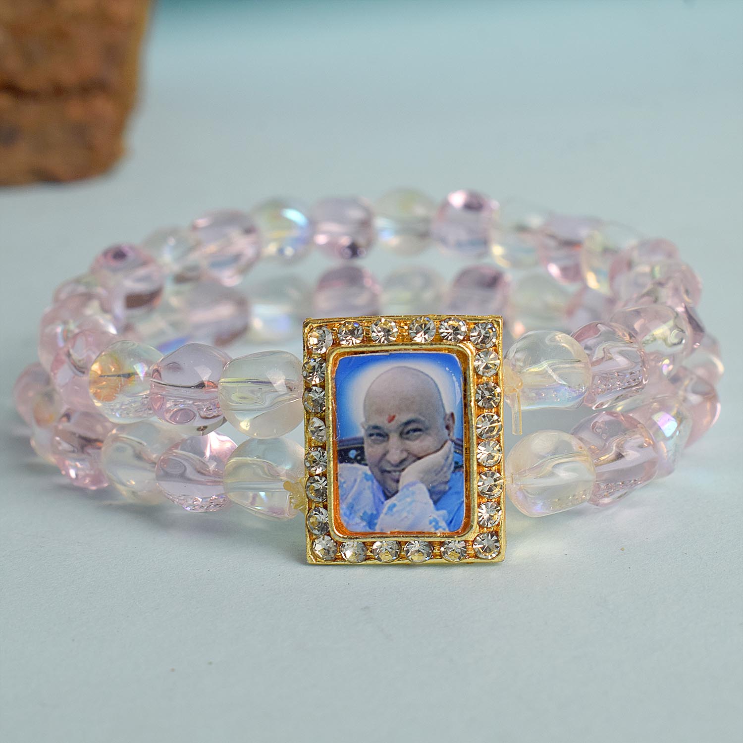 Buy Online | Pink Clear Double Layer Guruji Swaroop Bracelet | satvikstore.in