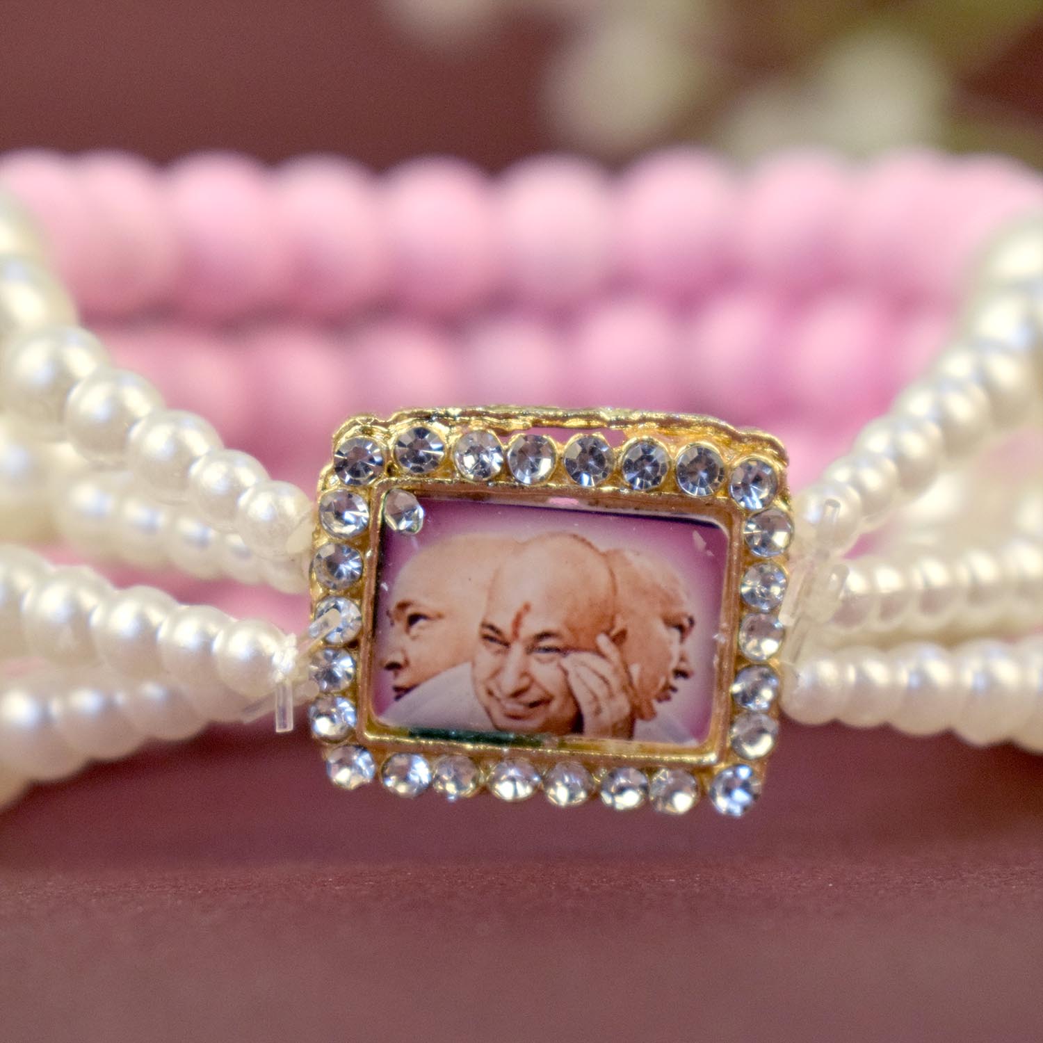 Buy Online | Pink & White Pearl Guruji Swaroop Bracelet | satvikstore.in
