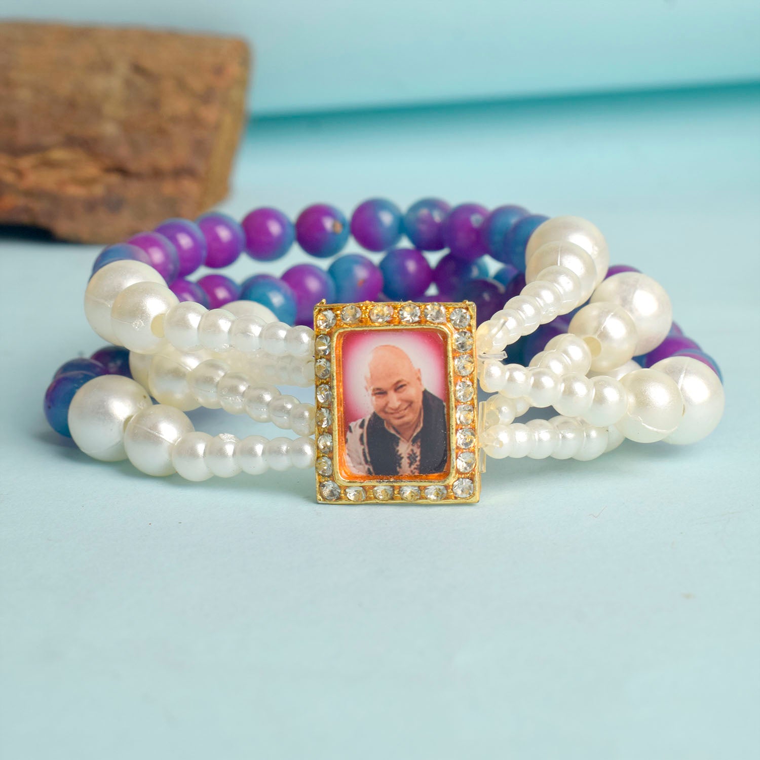 Buy Online | Purple & Blue White Pearl Guruji Swaroop Bracelet | satvikstore.in