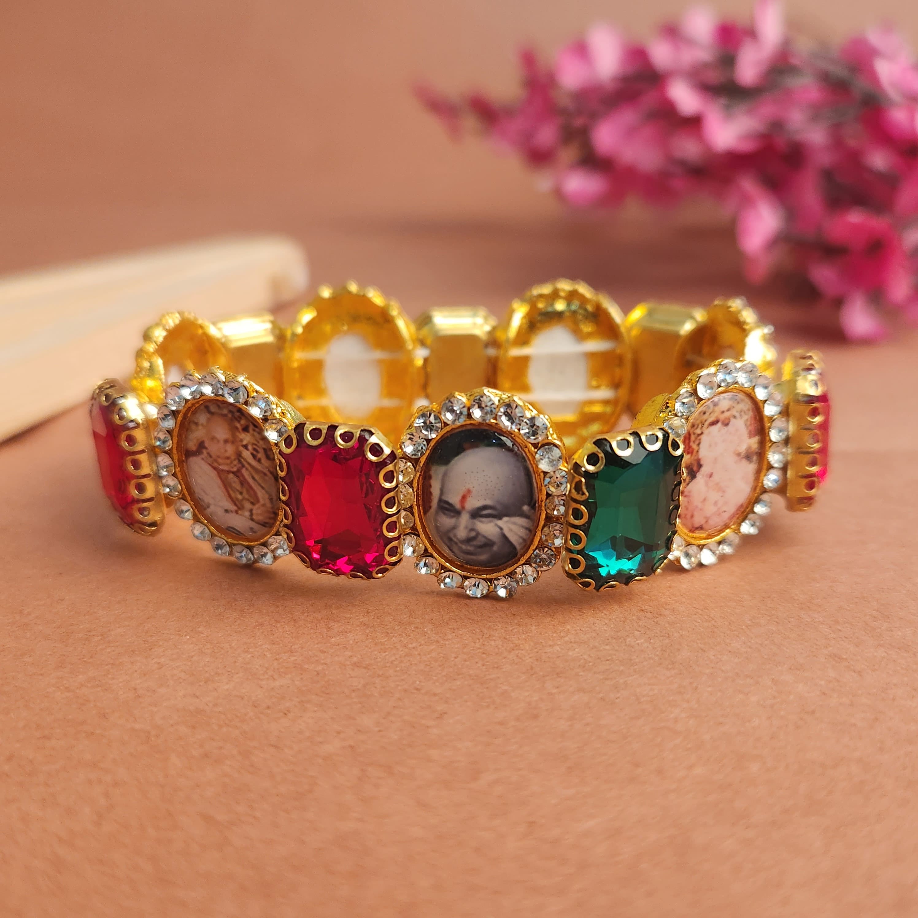 About Product: Guruji Stone Bracelets removes negative energy and and uplift the spiritual, mental and physical Health. Easy to wear, Skin Friendly. You can Gift this Beautiful Beads Bracelets to your family, friends, relative, neighbor on religious occasion like : pooja, kirtan, return gift idea, housewarming, home inauguration, Puja and other. Very beautiful bracelet made of artificial ceramic stones with smooth round finish, each bracelet is handpicked for quality check, Jai Guruji is Photo also there in the bracelet. This is Red and Black matches trend with tradition. Proudly Made in India for Our Devotees.