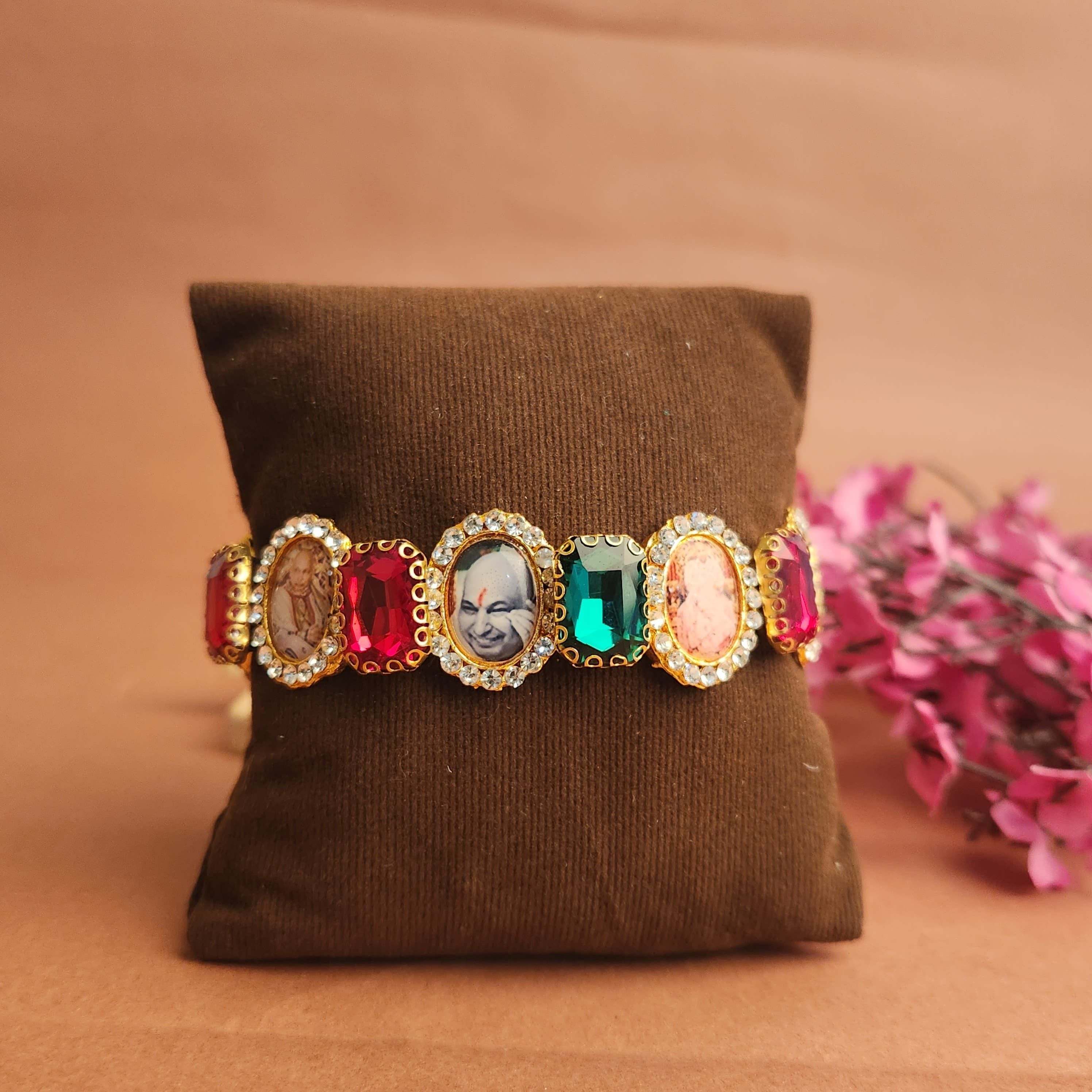 Our Guruji bracelet is a tangible symbol of divine connection. Crafted with care and reverence, it is designed to be worn close to your heart, serving as a constant reminder of Guruji's presence. The bracelet is adorned with sacred symbols and gemstones that hold spiritual significance, channeling positive energy and protection.