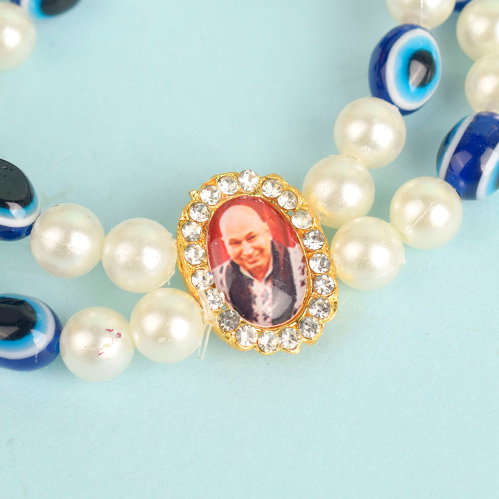 β€’ Item Name: White Pearl with Evil Eye Double Layer Guruji Swaroop Bracelet