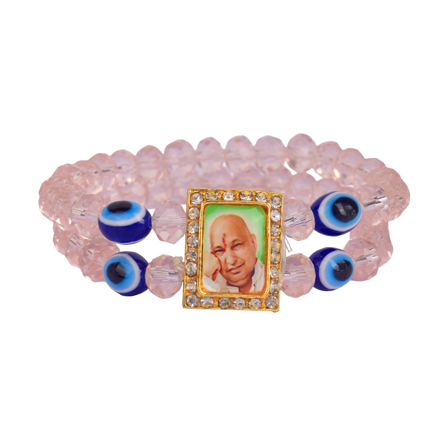 • Material: Pink Spiritual Beads, Guruji Swaroop Centerpiece, Evil Eye Bead, Elastic Stretch Cord