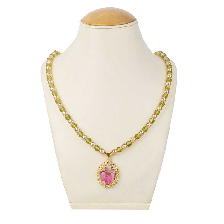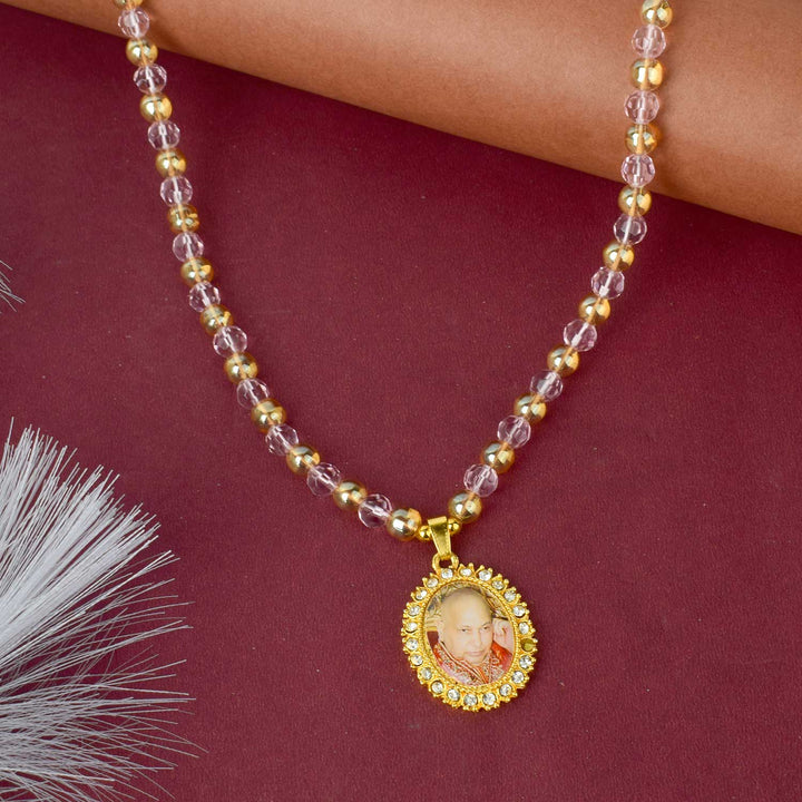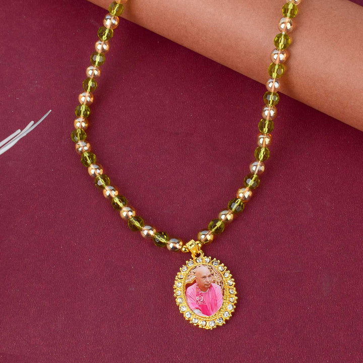 β€’ Material: Golden Beads Combined with Assorted Coloured Beads & Guruji Swaroop Locket
