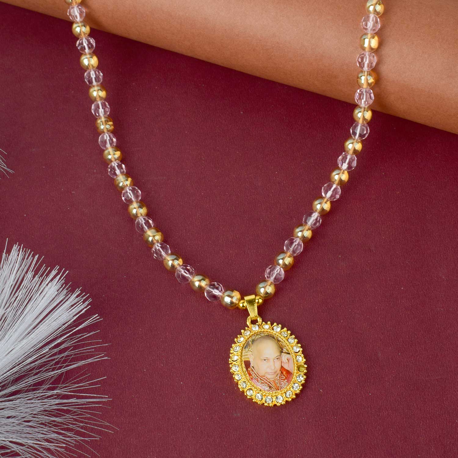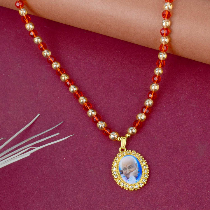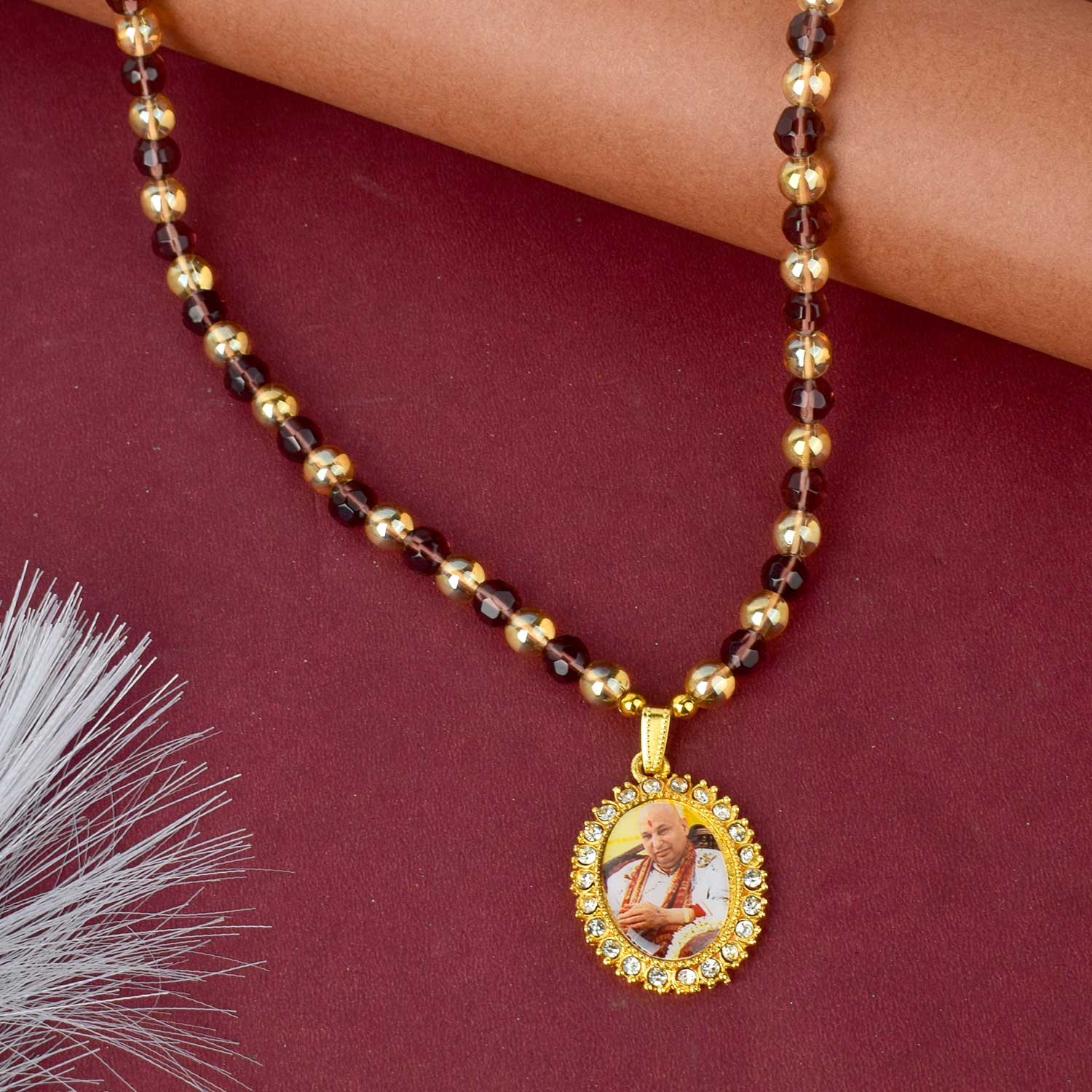 About Product: Infused with vibrant energy and divine intention, this Jai Guruji Swaroop Mala features elegant golden beads accented with assorted colored beads in shades of brown, red, pink, green, and orange. The mala is enhanced with a Guruji Swaroop locket, making it both a spiritual symbol and a statement of faith. Ideal for pooja, meditation, or gifting, this mala blends tradition with grace.