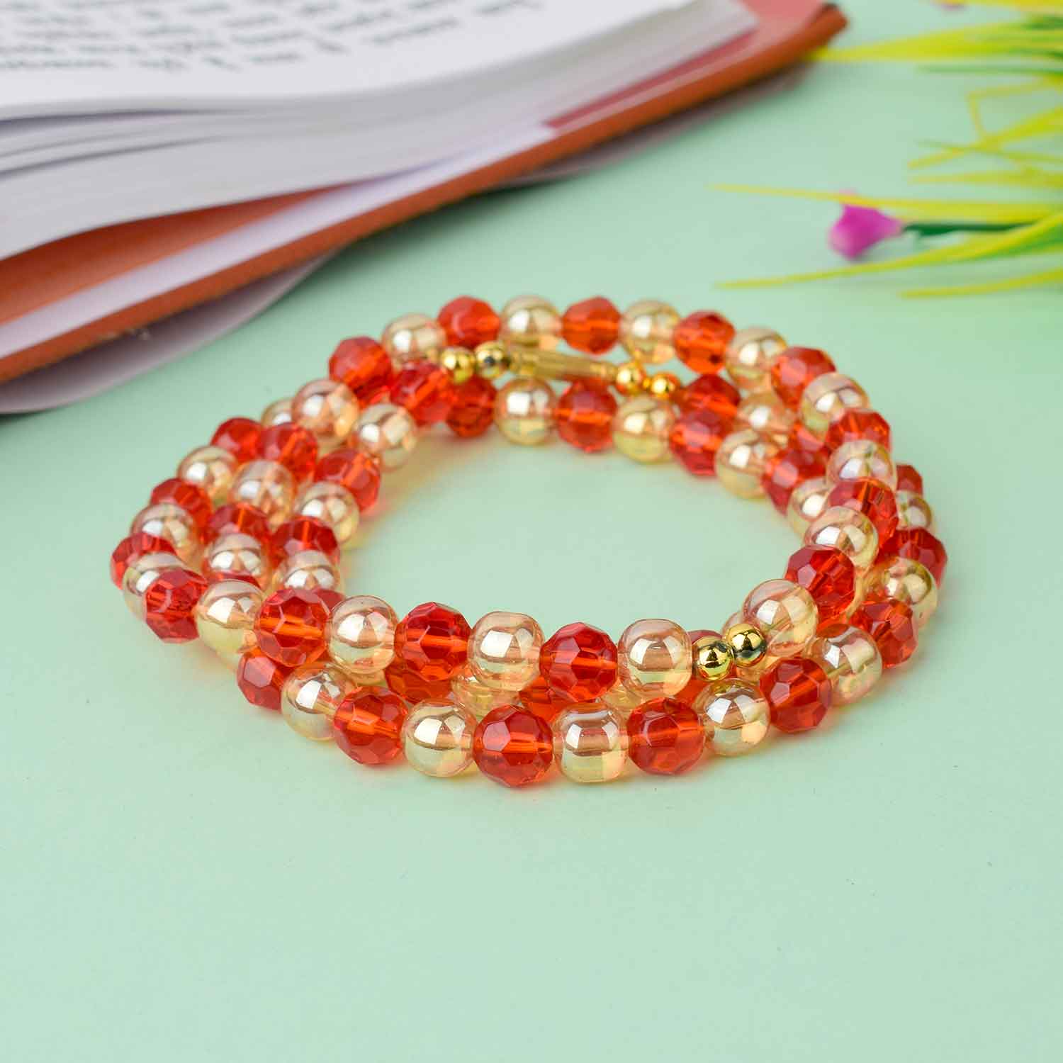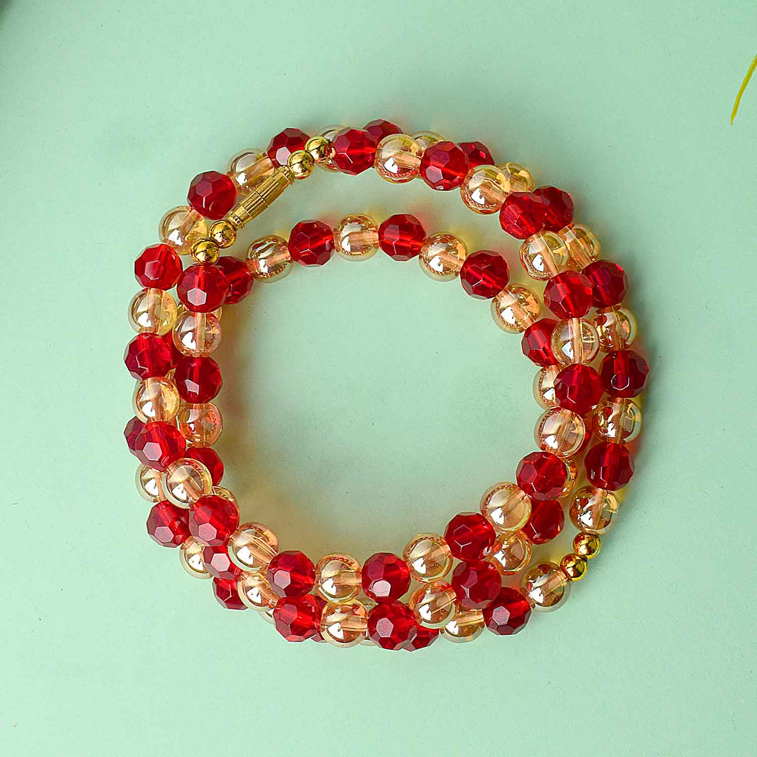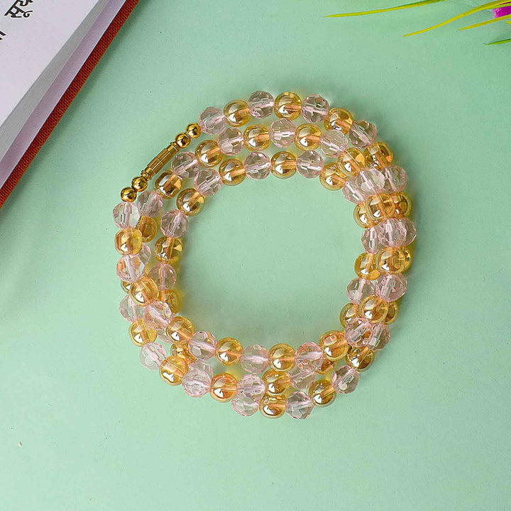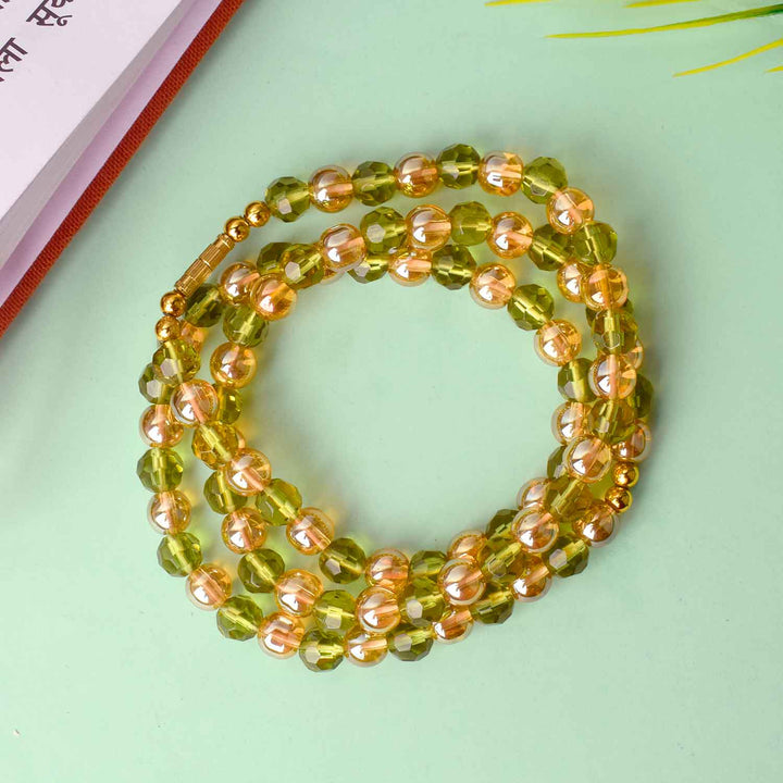 β€’ Item Name: Jai Guruji Swaroop Mala – Golden & Coloured Beads (Assorted)
