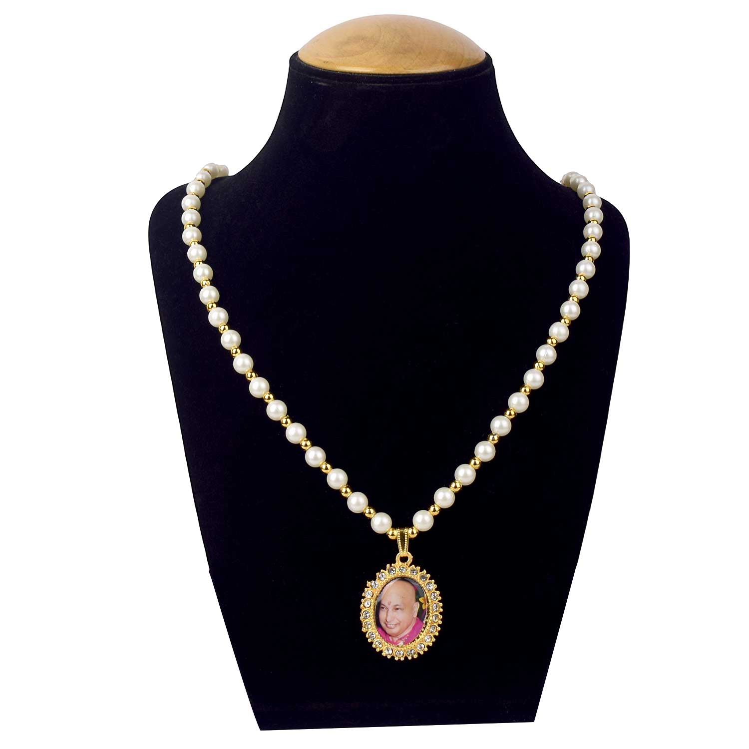 β€’ Material: Premium White and Golden Prayer Beads with Guruji Swaroop Locket