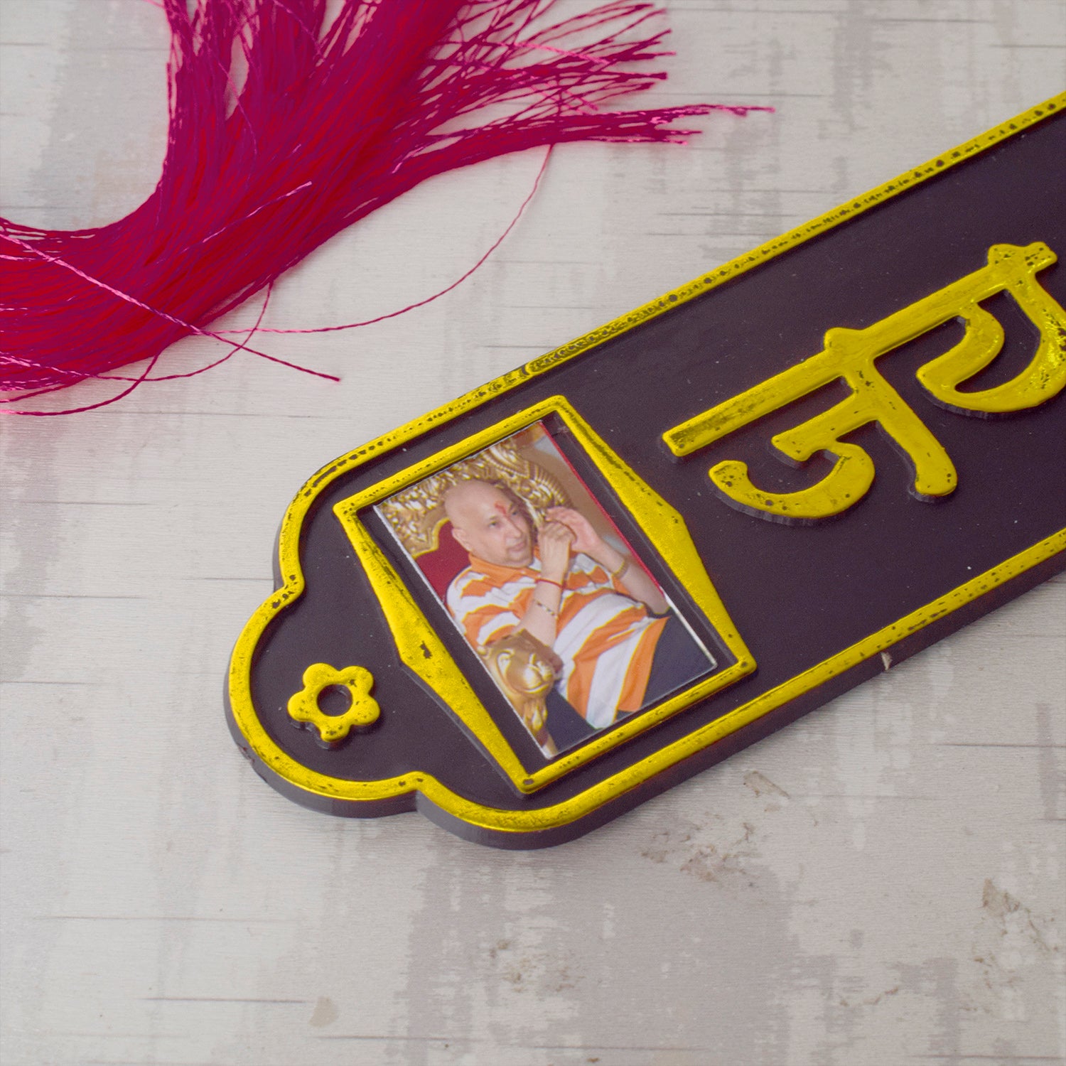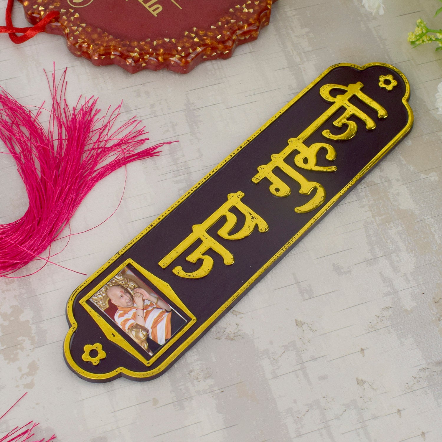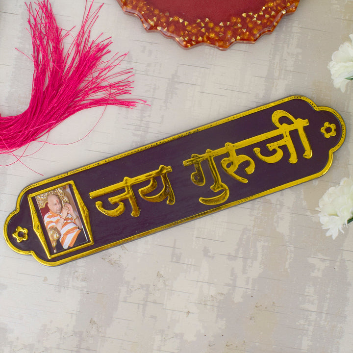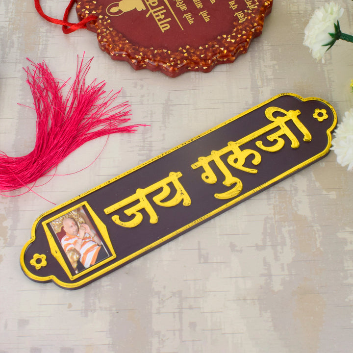 Buy Om Jai Guruji Written on Brown MDF Sheet Door Plate – satvikstore.in