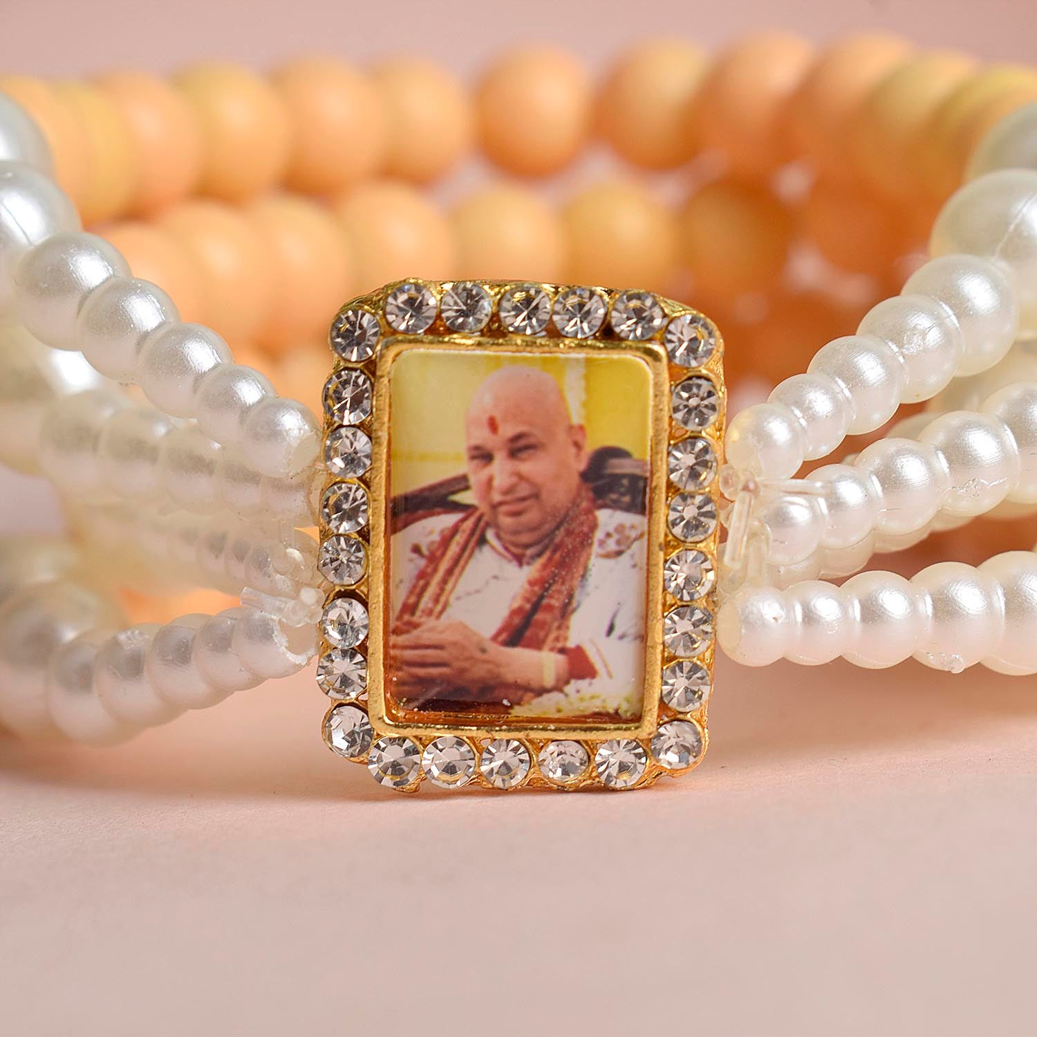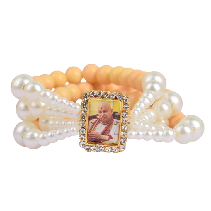 Buy Online Pastel Yellow & White Pearl Guruji Bracelet| satvikstore.in