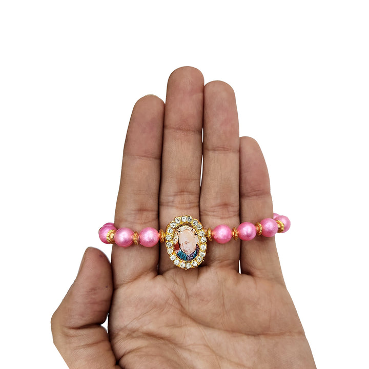 Pink Beaded Guru Ji Maharaj Handmade Bracelets for Men and Women