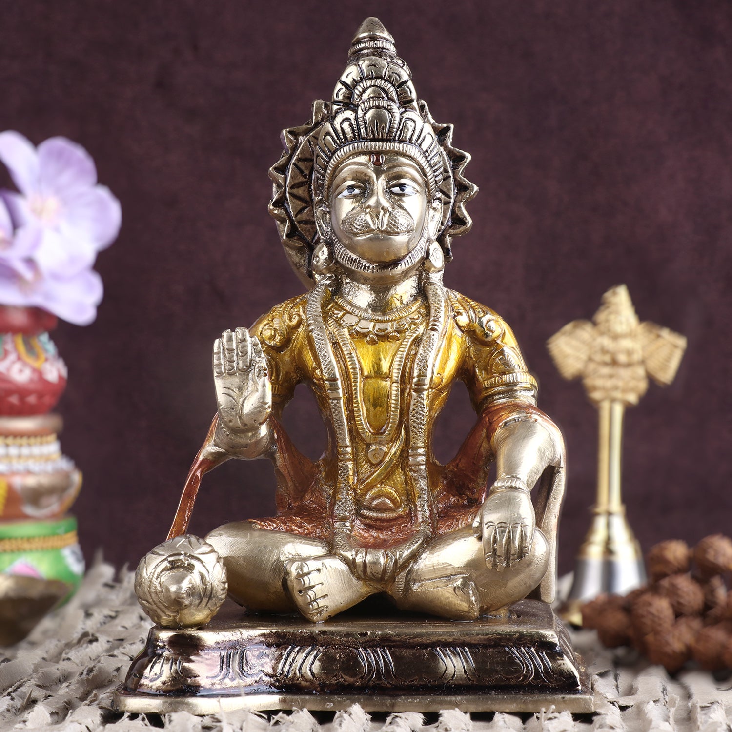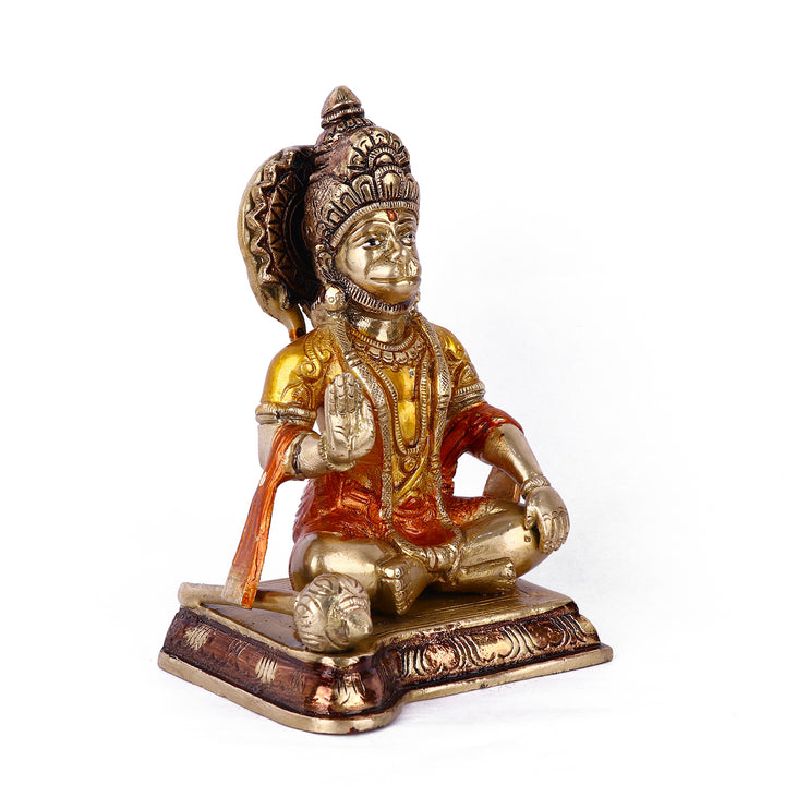 Brass Hanuman Idol | Lord Hanuman Idol for Temple | Puja Room Decor | Brass Bajrangbali Idol | Antique Finish Brass Hanuman Idol | Brass Sitting Hanuman Statue | Handmade Brass Idol |