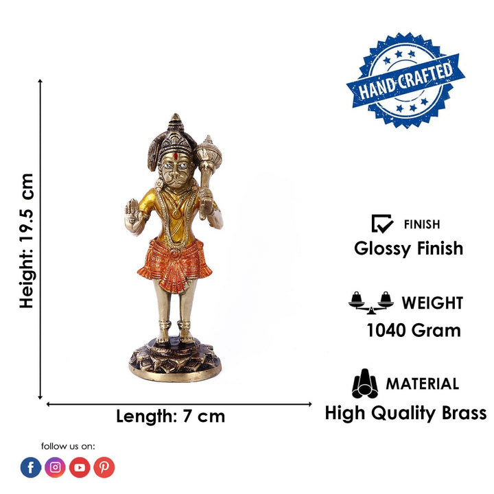 • Item Name:  7.6 Inch Brass Standing Hanuman Ji Idol