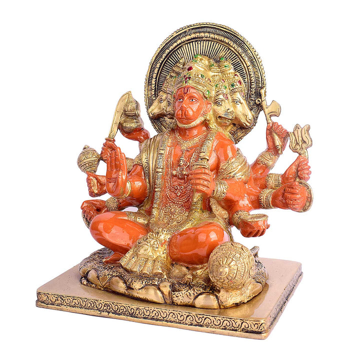 • Item Name: 8.7 Inch Brass Kesari Panchmukhi  Hanuman Big Sitting Idol