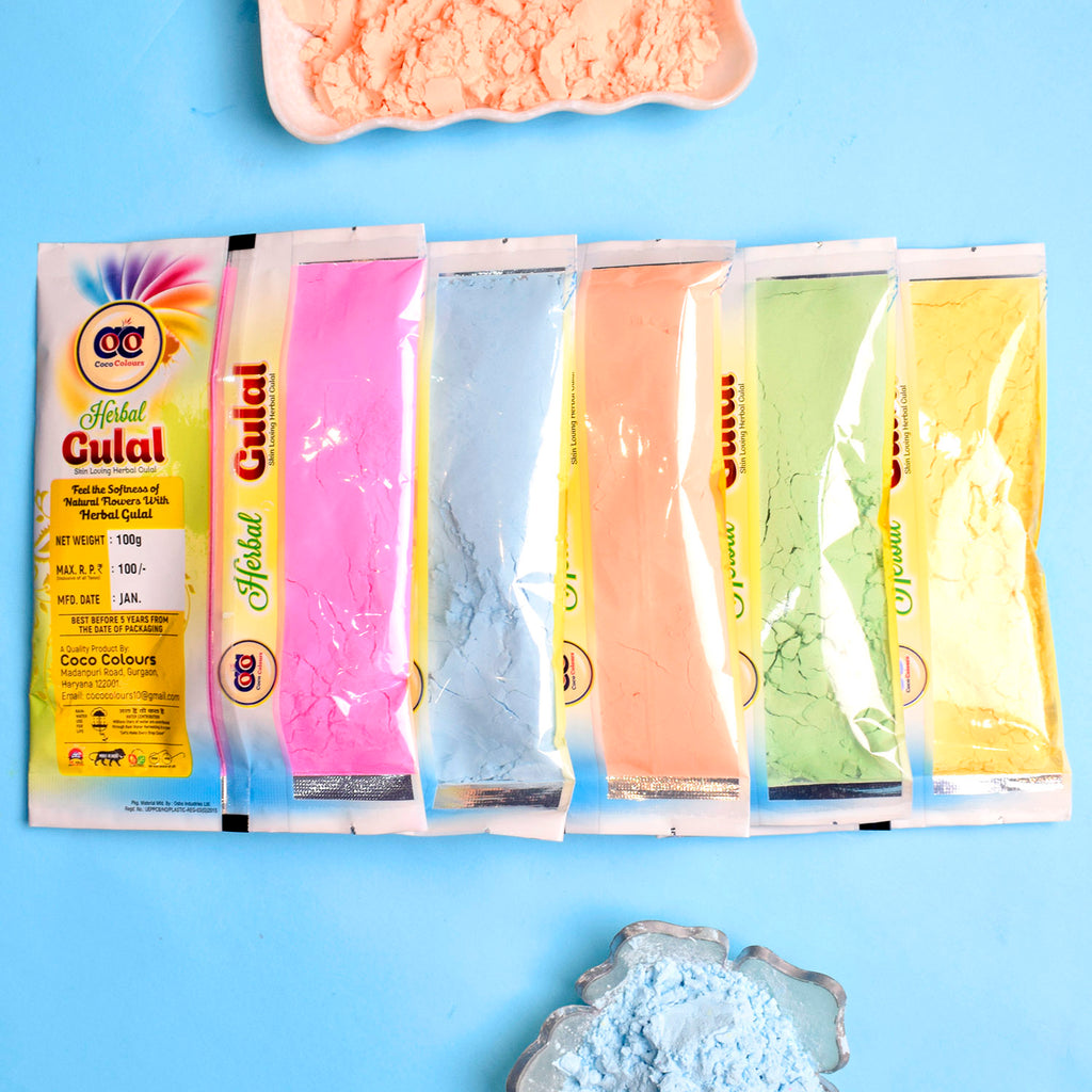 • Item Name: COCO Organic Gulal Holi Colors Set of 5 with Gift Packaging