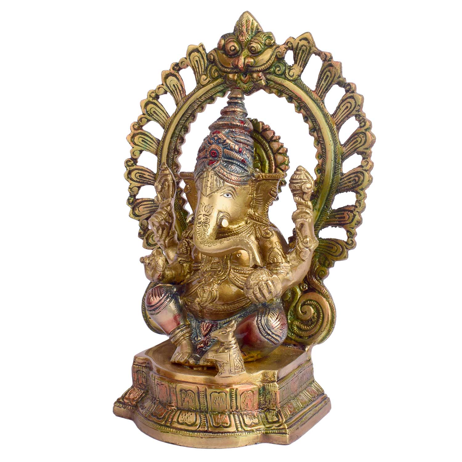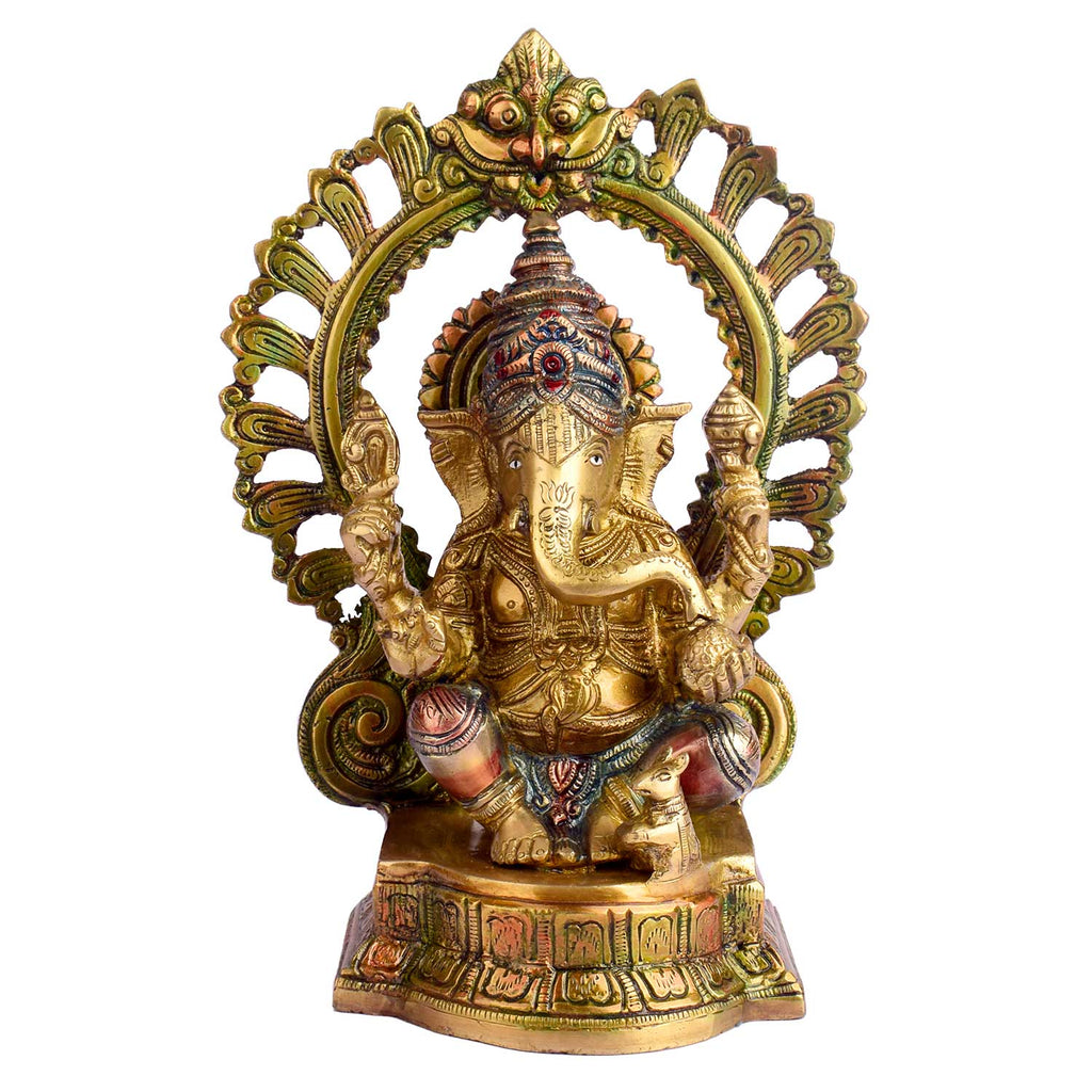 Buy 10.6 Inch Lord Ganesha on Singhasan Brass Idol - Satvikstore.in – satvikstore.in