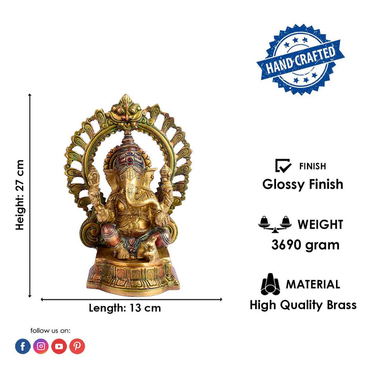 • Item Name: 10.6 Inch Lord Ganesha on Singhasan Brass Idol