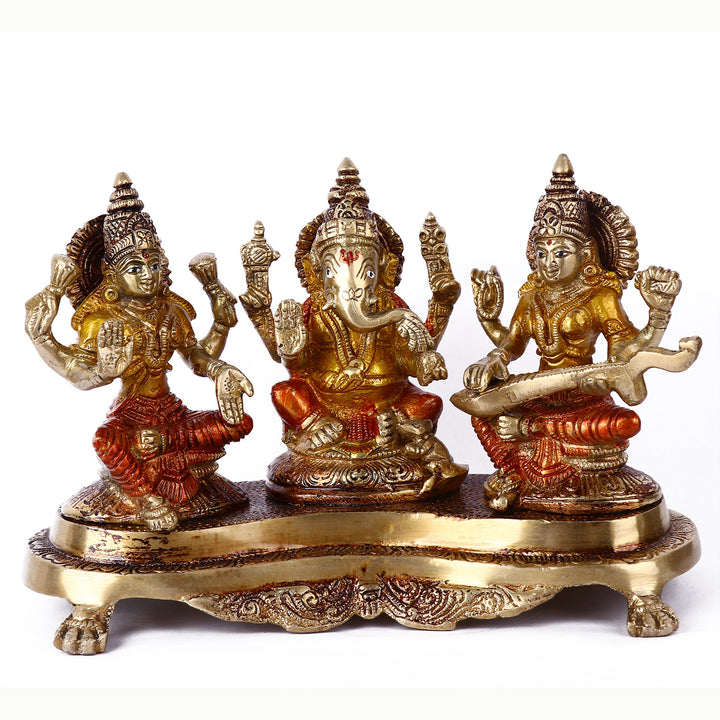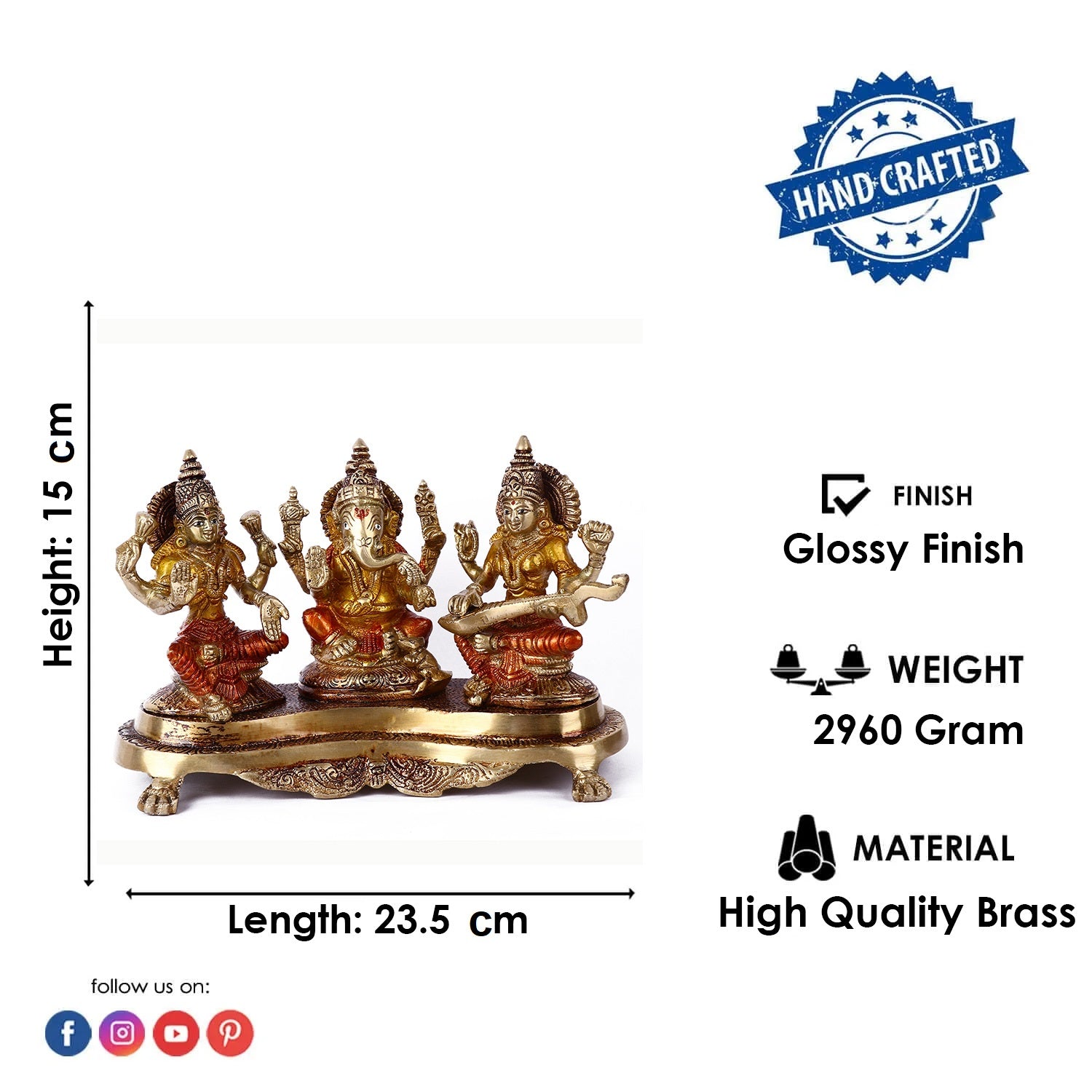Brass Lakshmi Ganesh Saraswati Idol | Puja Room Decor | Best Brass Gift Item for Housewarming | Brass Lakshmi Ganesha with Saraswati Idol | Brass Idol | Antique Finish Brass Statue | Exclusive Brass Statue |