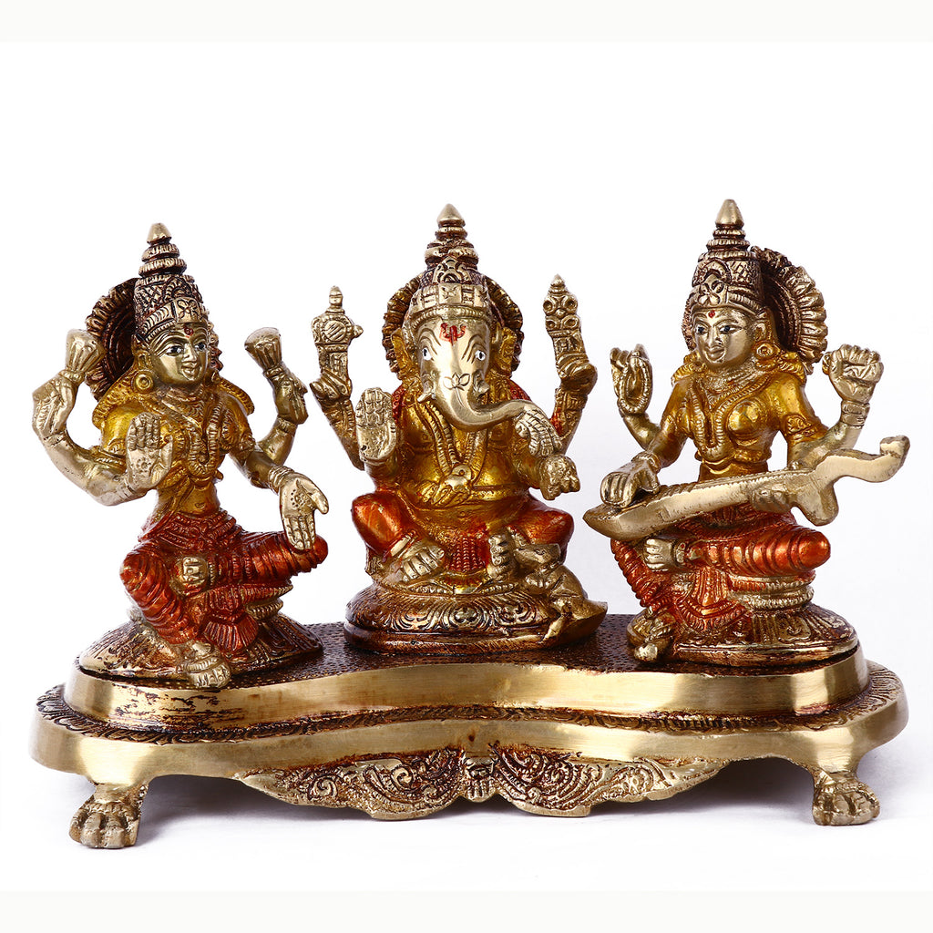 Brass Lakshmi Ganesh With Saraswati Idol | Buy Online | Satvikstore.in – satvikstore.in