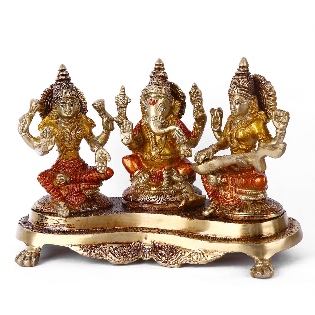 About Product: Decorative Beautifully Engraved Lakshmi Ganesh With Sarasvati Idol Statue to protect you from all negative energy, is a symbol of Purity, knowledge, success and Prosperity.