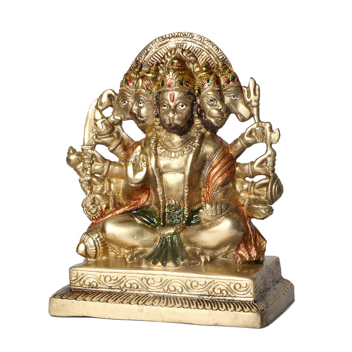 6.5 Inch Alluring Panchmukhi Hanuman Dhyan Mudra Idol (Brass)