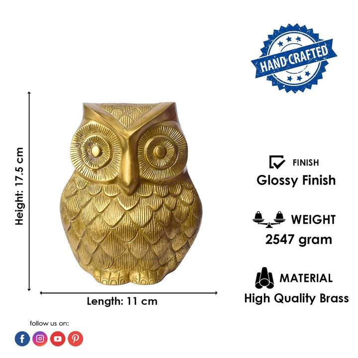 About the Product: The 6.9-inch  Brass Engraved Owl (Lakshmi Vaahan) Statue is a beautifully crafted piece that symbolizes wisdom and prosperity. Made from high-quality brass, this statue features intricate engravings that enhance its spiritual significance. The owl is the Vaahan (vehicle) of Goddess Lakshmi, the goddess of wealth, fortune, and prosperity. As a Lakshmi Vaahan Statue, it serves as a powerful symbol to attract divine blessings and abundance into your life.