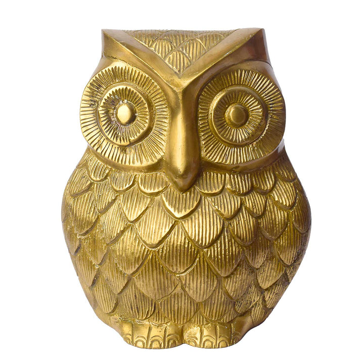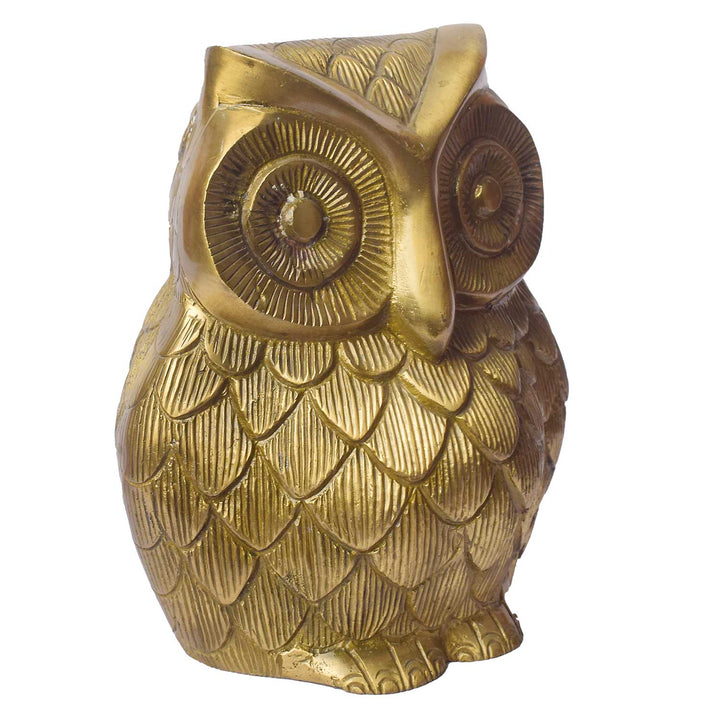 Brass Owl Statue | Lakshmi Vaahan Owl |  Owl Showpiece Brass Statue | Antique Finish Brass Statue | Owl Statue for Home Décor | Brass Engraved Owl |
