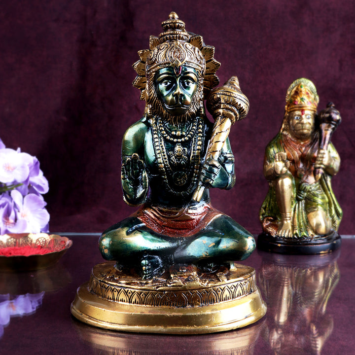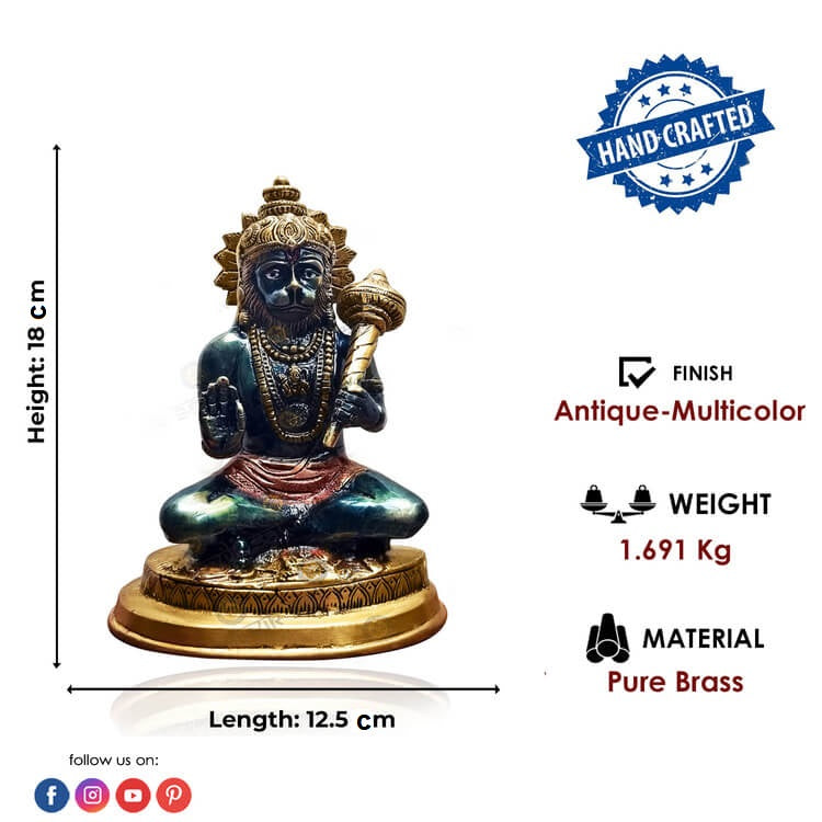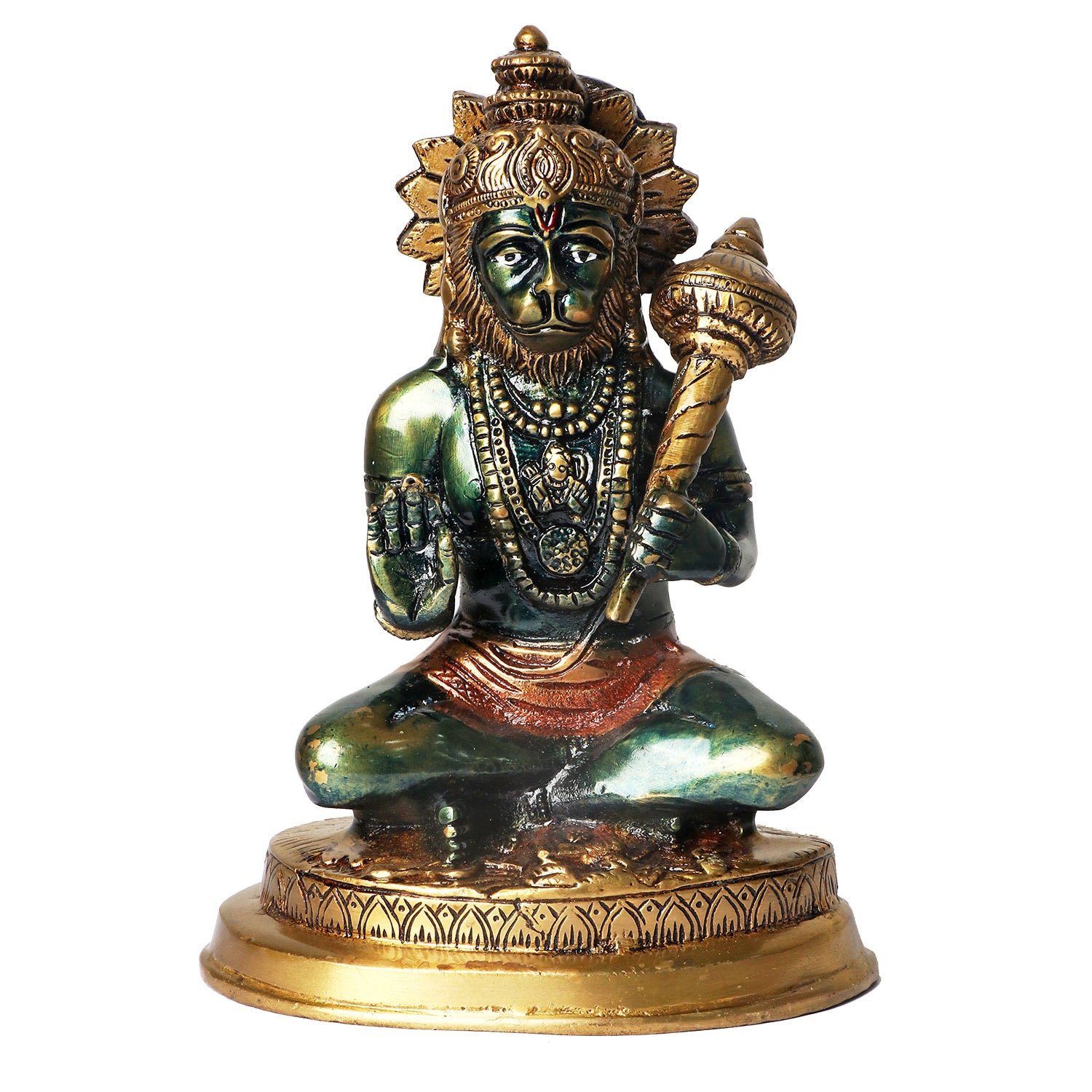 • About Product: 7 Inch Pure Brass Hanuman Sitting Bajrangbali Statue.
