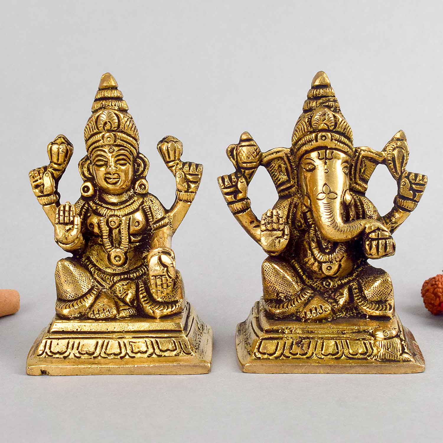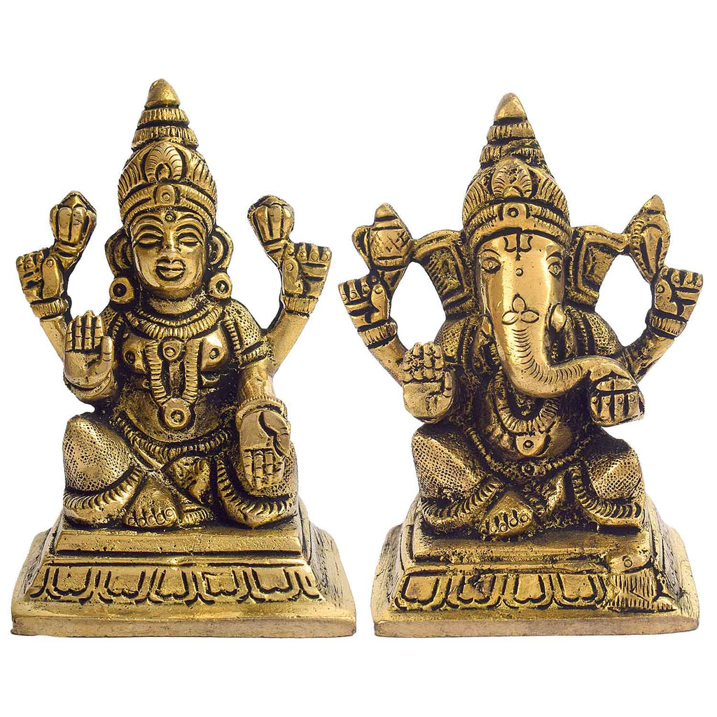 Buy Online | Gorgeous Brass Laxmi Ganesh Pair Idol | Satvikstore.in – satvikstore.in
