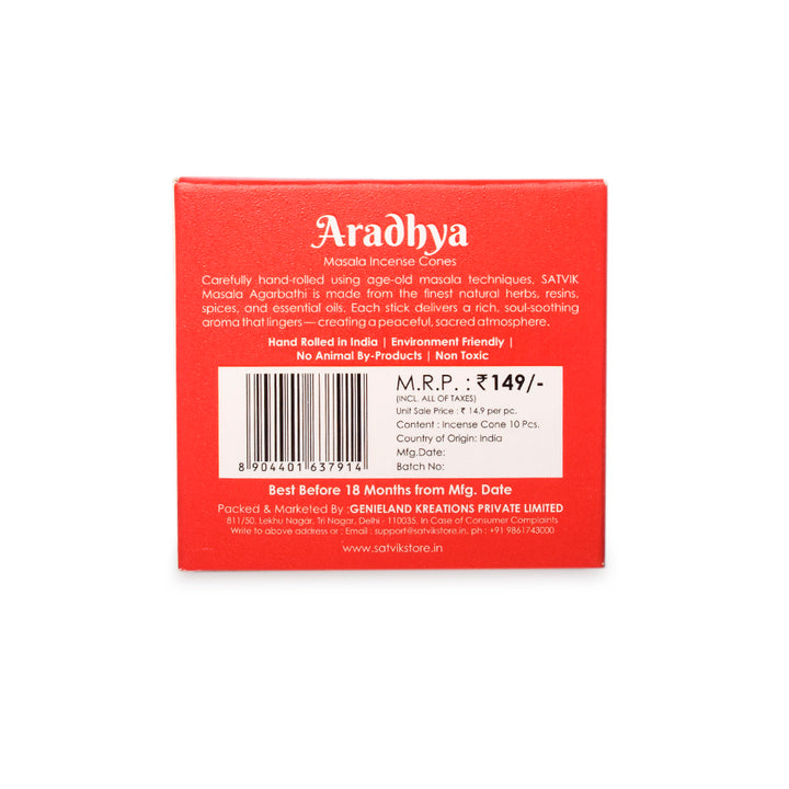 The word Aradhya means "worthy of worship," and these cones embody that essence by creating a serene atmosphere where the mind, body, and soul align with spiritual energy. Burning these incense cones symbolizes devotion and is an offering to the divine.