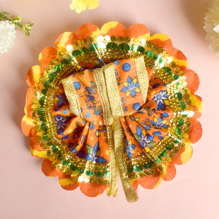 Dress your Laddu Gopal in vibrant joy with this Cheerful Printed Dress featuring beautiful, colorful floral designs. Available in sizes 0, 1, and 2, this delightful outfit bursts with lively hues and playful flower patterns, infusing your deity’s appearance with festive charm. Ideal for Janmashtami, daily darshan, or special pooja rituals, it offers both comfort and bright elegance. Let your beloved Krishna radiate happiness and beauty in this eye-catching floral attire.