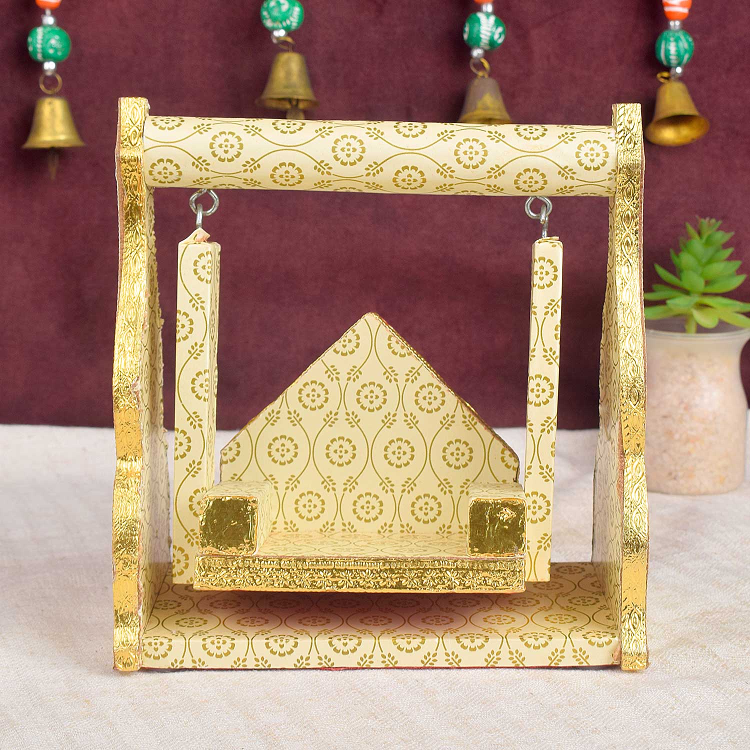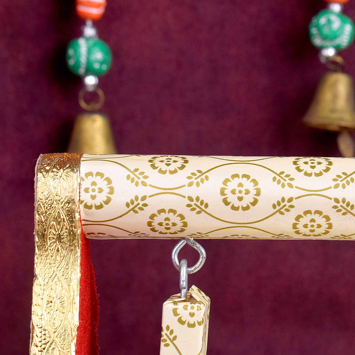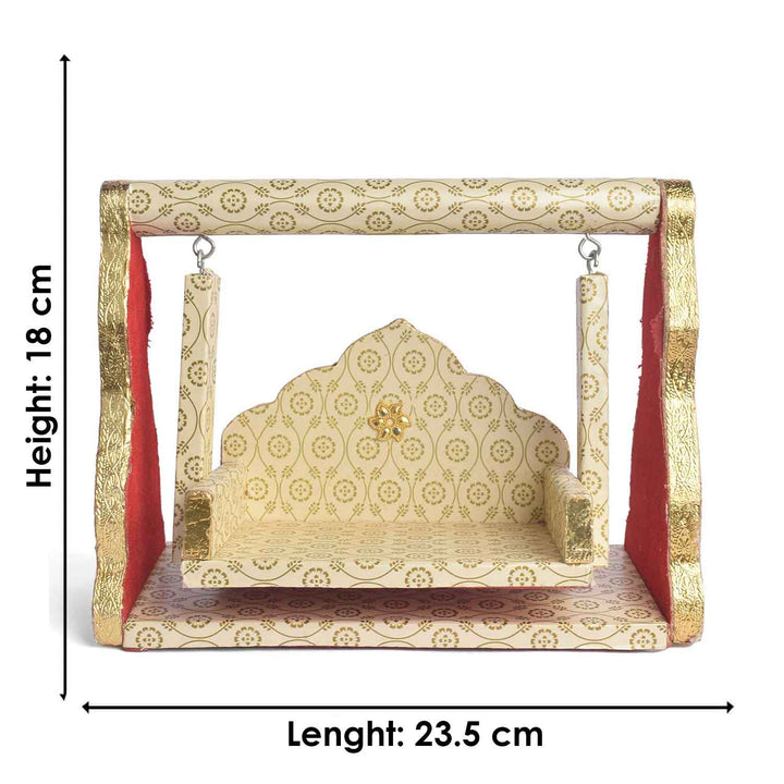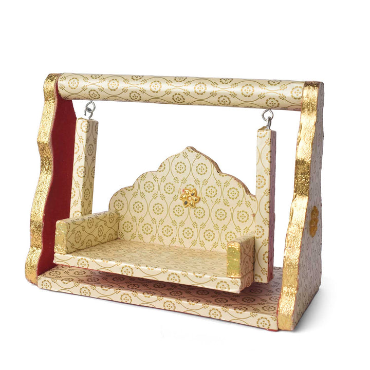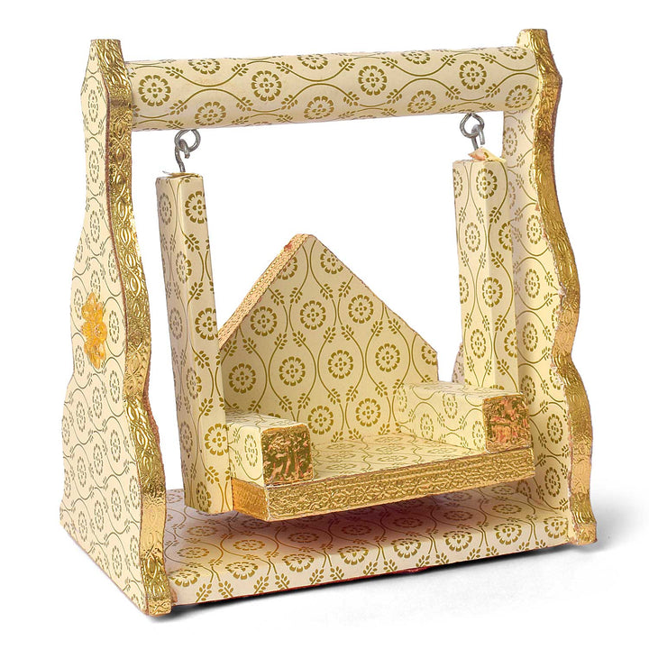 Item Name: Wooden Jhula Wrapped in White with Golden Design Paper